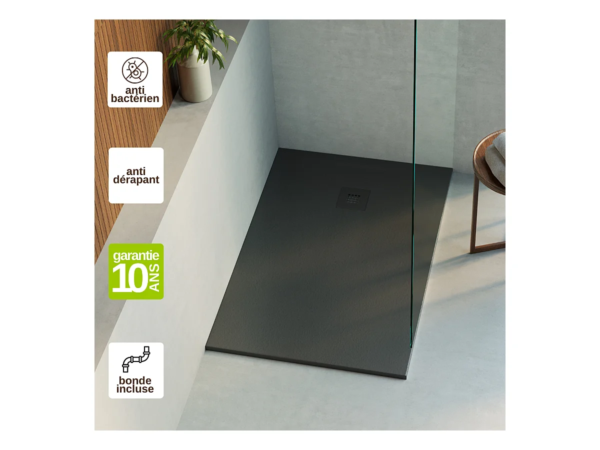 Receveur de Douche Extraplat 180x90x3cm Noir en Résine Minérale - Antidérapant, Texture Ardoise - THOR LAVABERG