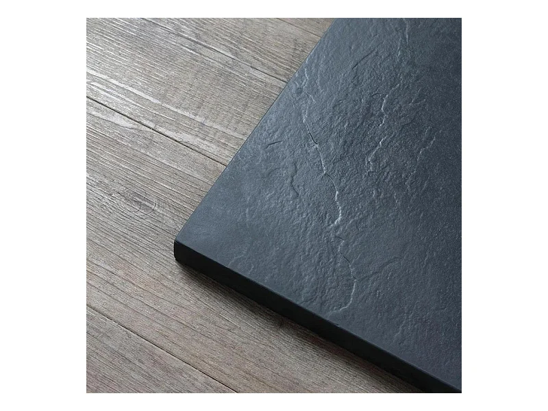 Receveur de douche fin carré noir « Milano » en résine effet pierre, antidérapant, 70x70h cm