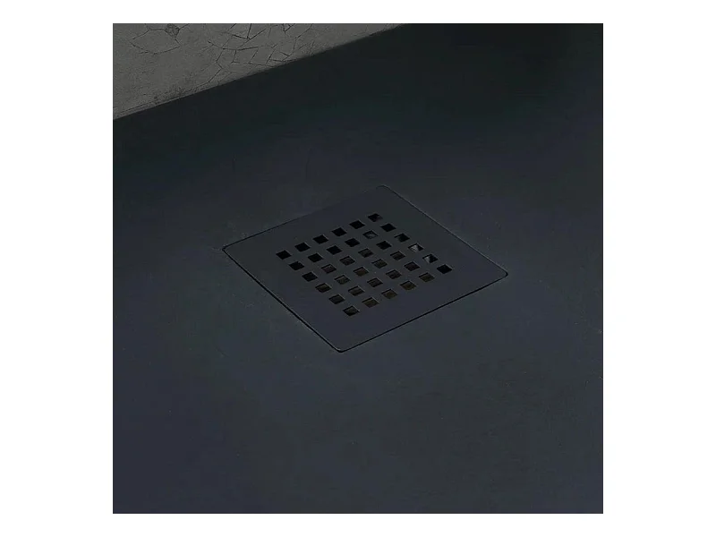 Receveur de douche fin carré noir « Milano » en résine effet pierre, antidérapant, 80x80h cm