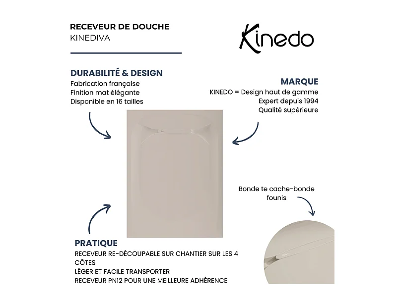 Receveur de douche KINEDO Kinediva extra-plat 120x100 Beige