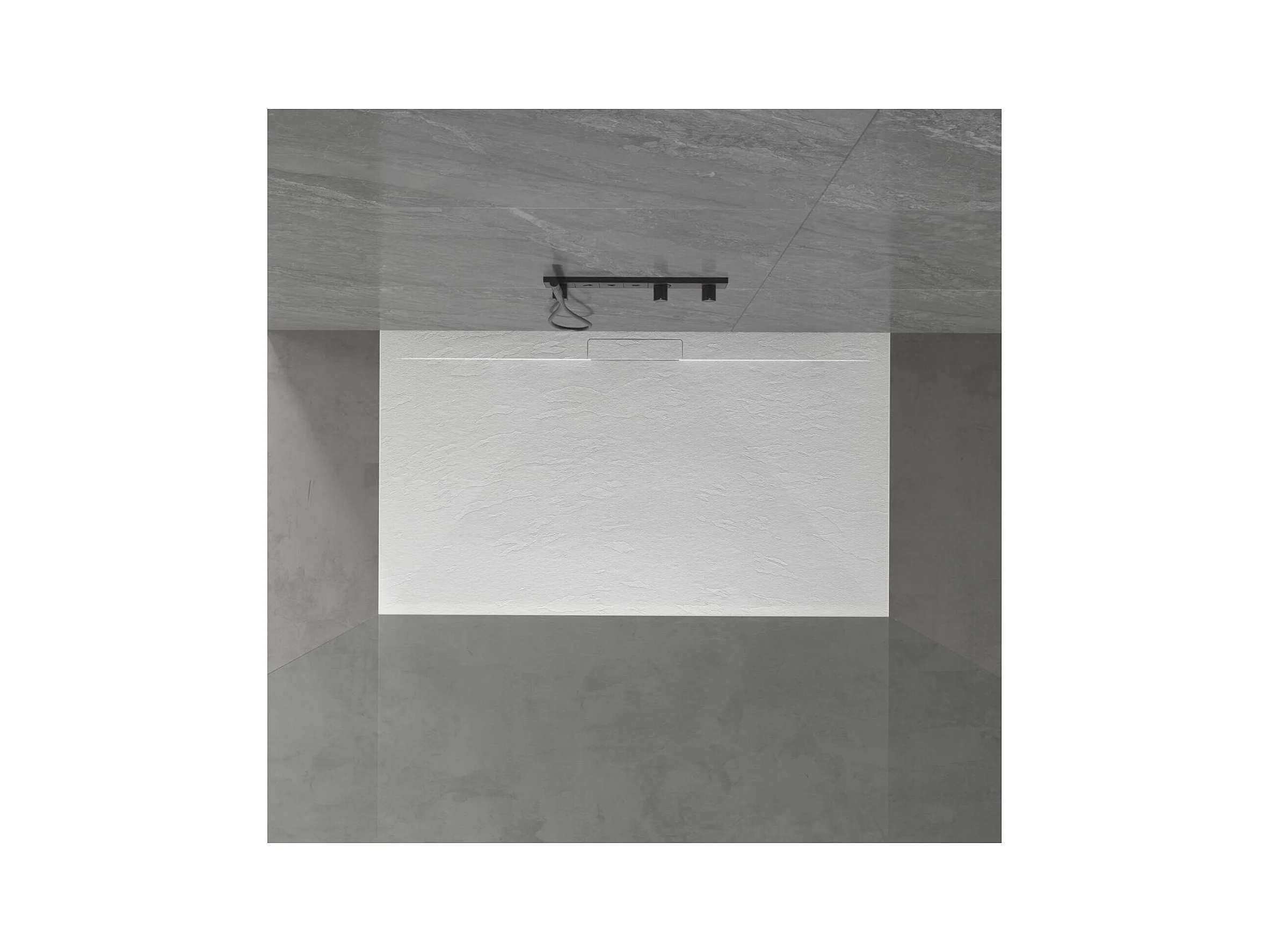 Receveur de douche mural aspect ardoise extra-plat blanc - Bonde incluse