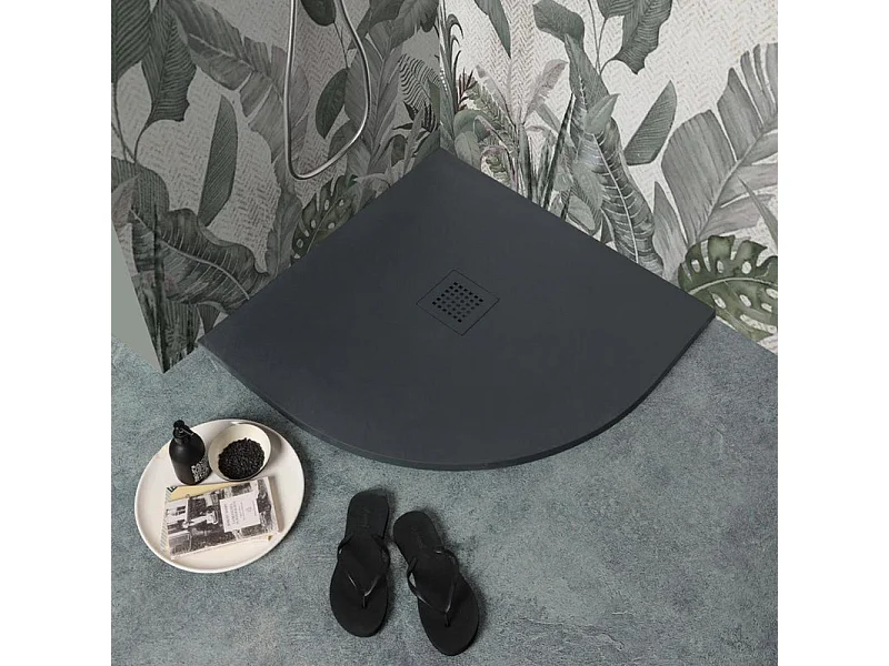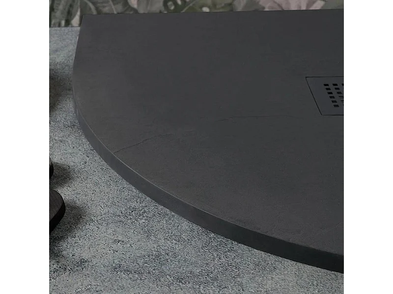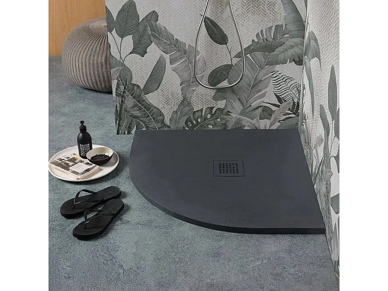 Receveur de douche semi-circulaire noir « Milano » en résine effet pierre antidérapant cm 90x90h