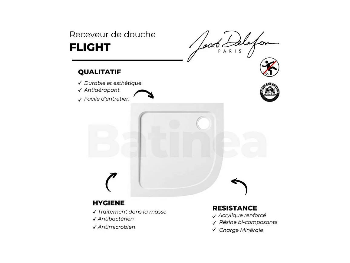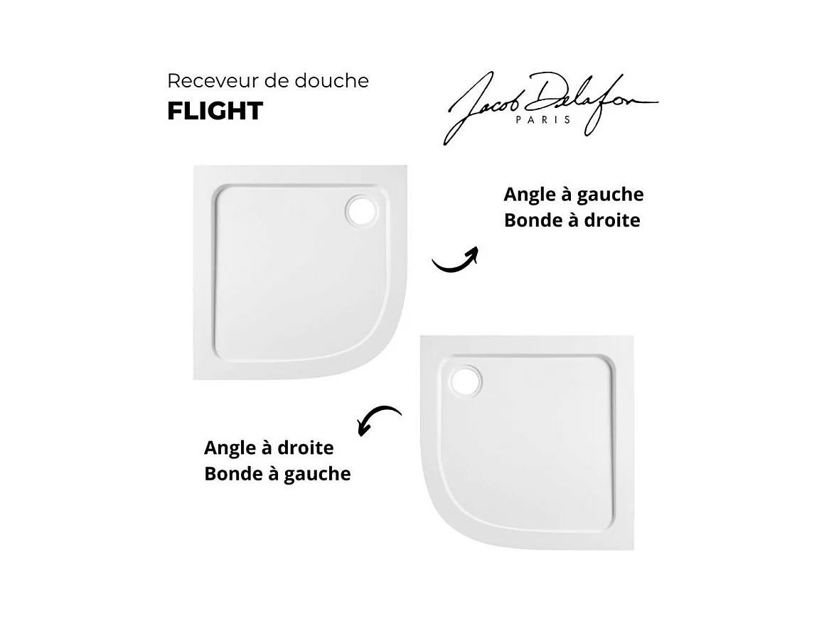 Receveur douche antidérapant JACOB DELAFON Flight quart de rond, 120 x 90 cm