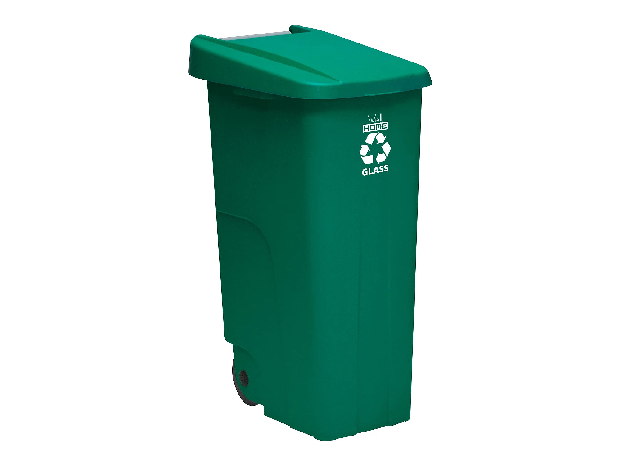 Récipient de recycle 110 litres, fermé avec le couvercle, idéal pour le recyclage en verre, avec roues, L42 P57 H88