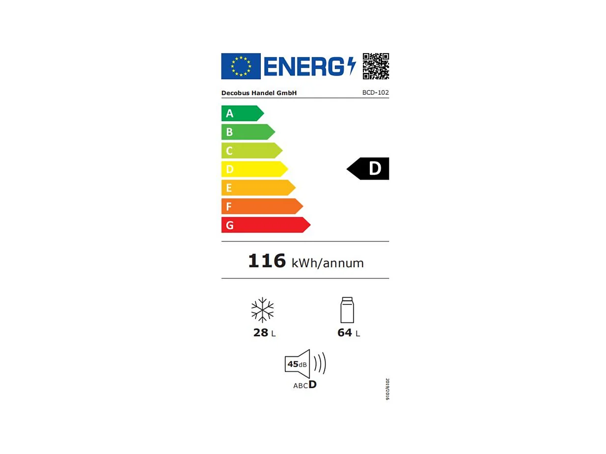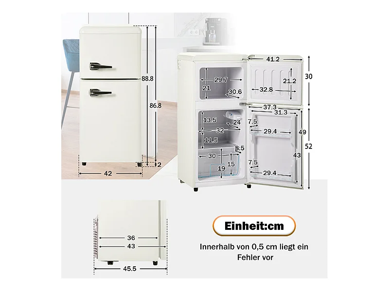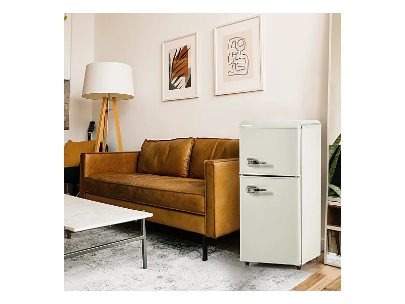 Réfrigérateur 22L+38L, double porte avec LED et pieds réglables, classe E, -27°C-13°C, 102 kWh/an, Blanc, 42x45.5x88.8cm