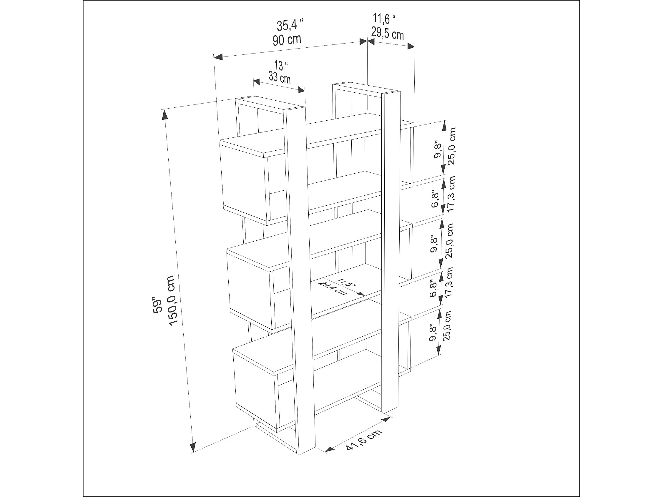 Cicek Bibliothèque 109 cm Hauteur Design Unique (Blanc et Oud)