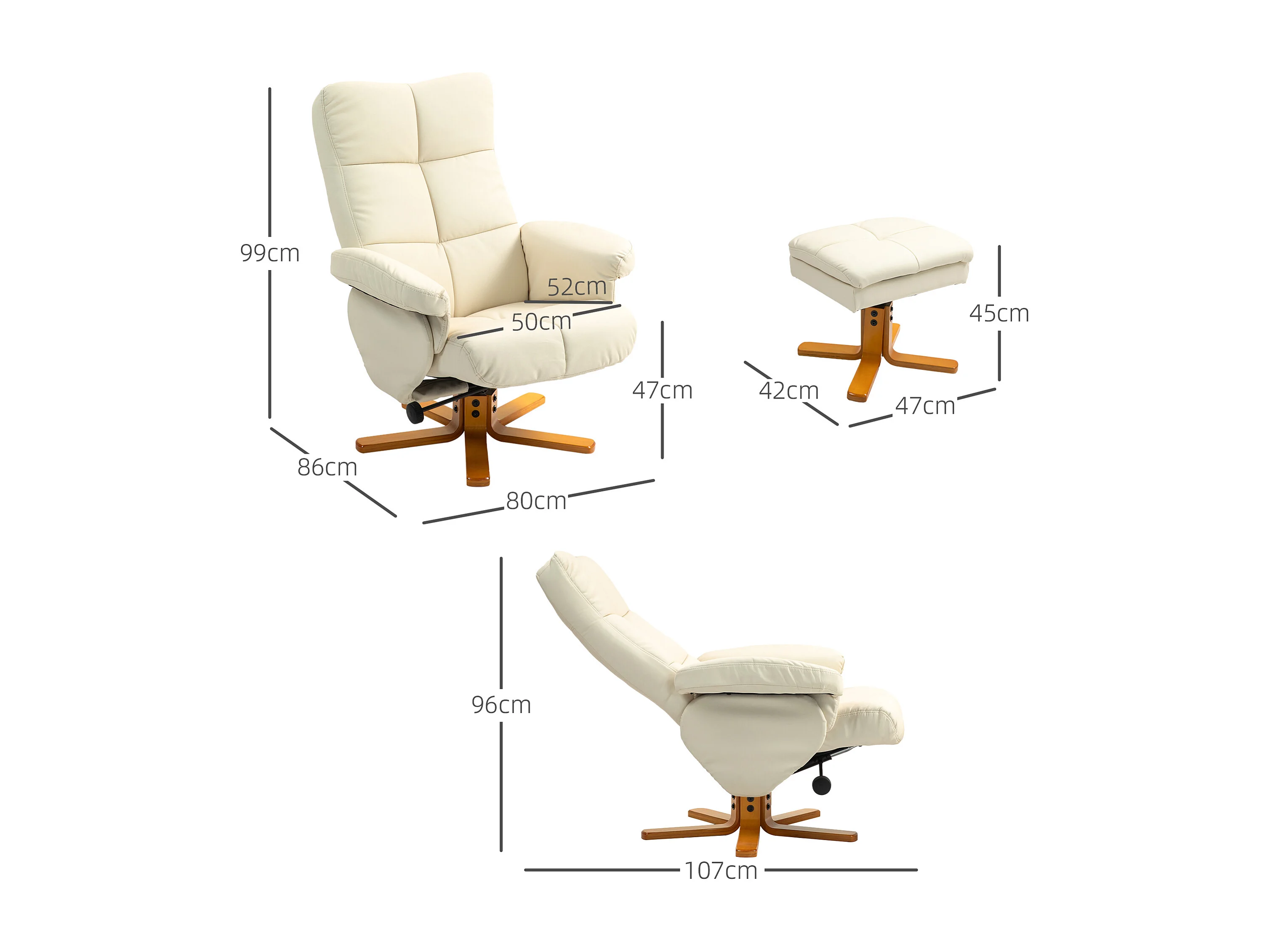 Relaxsessel avec Hocker, 360° pivotant, avec fonction inclinable, cuir artificiel, crème (80x86x99 cm)