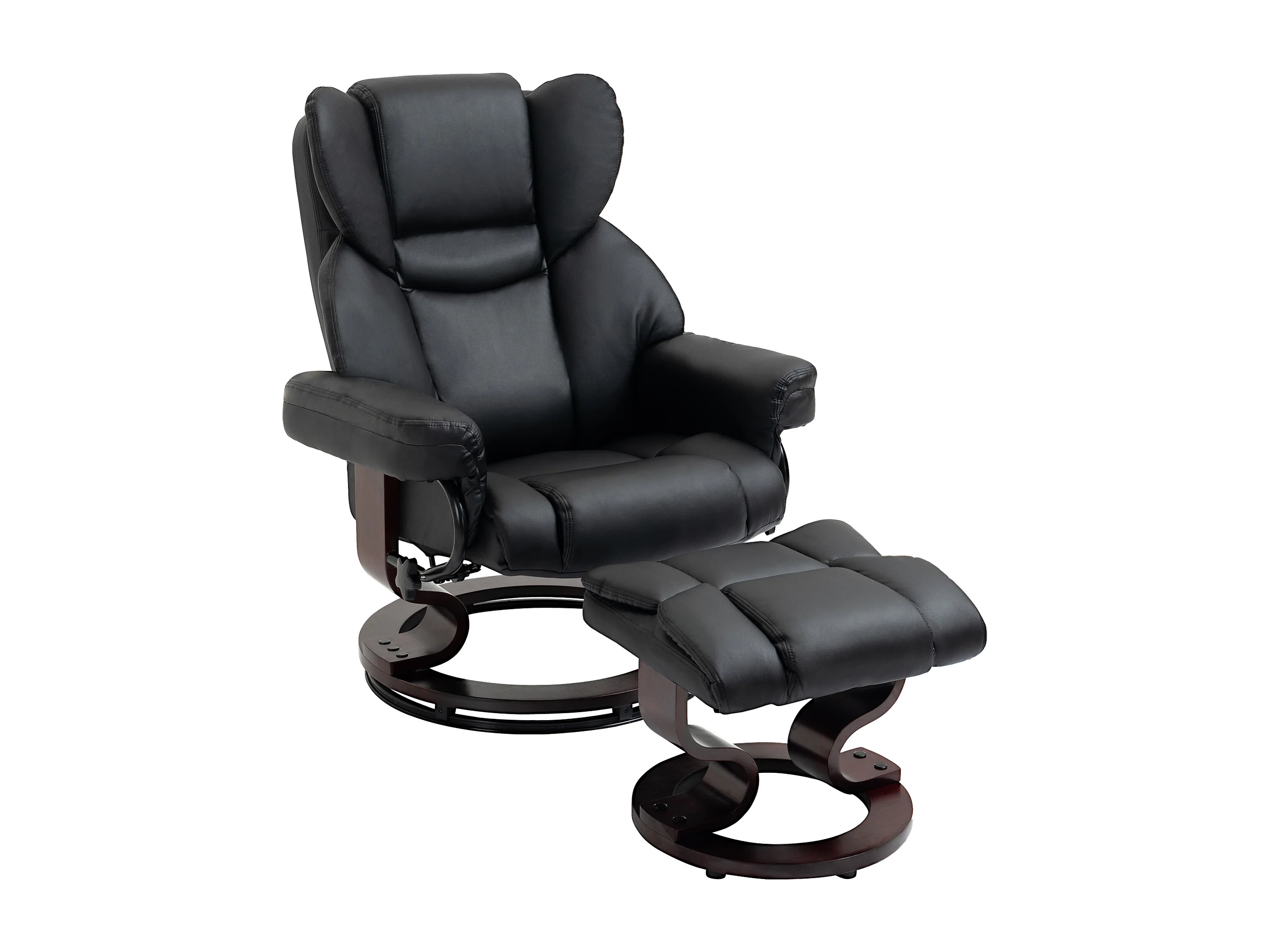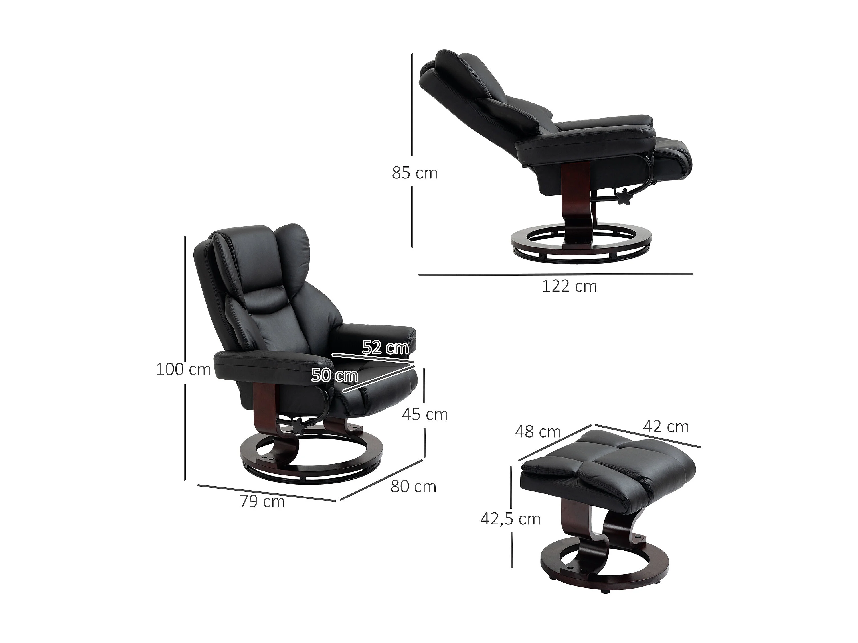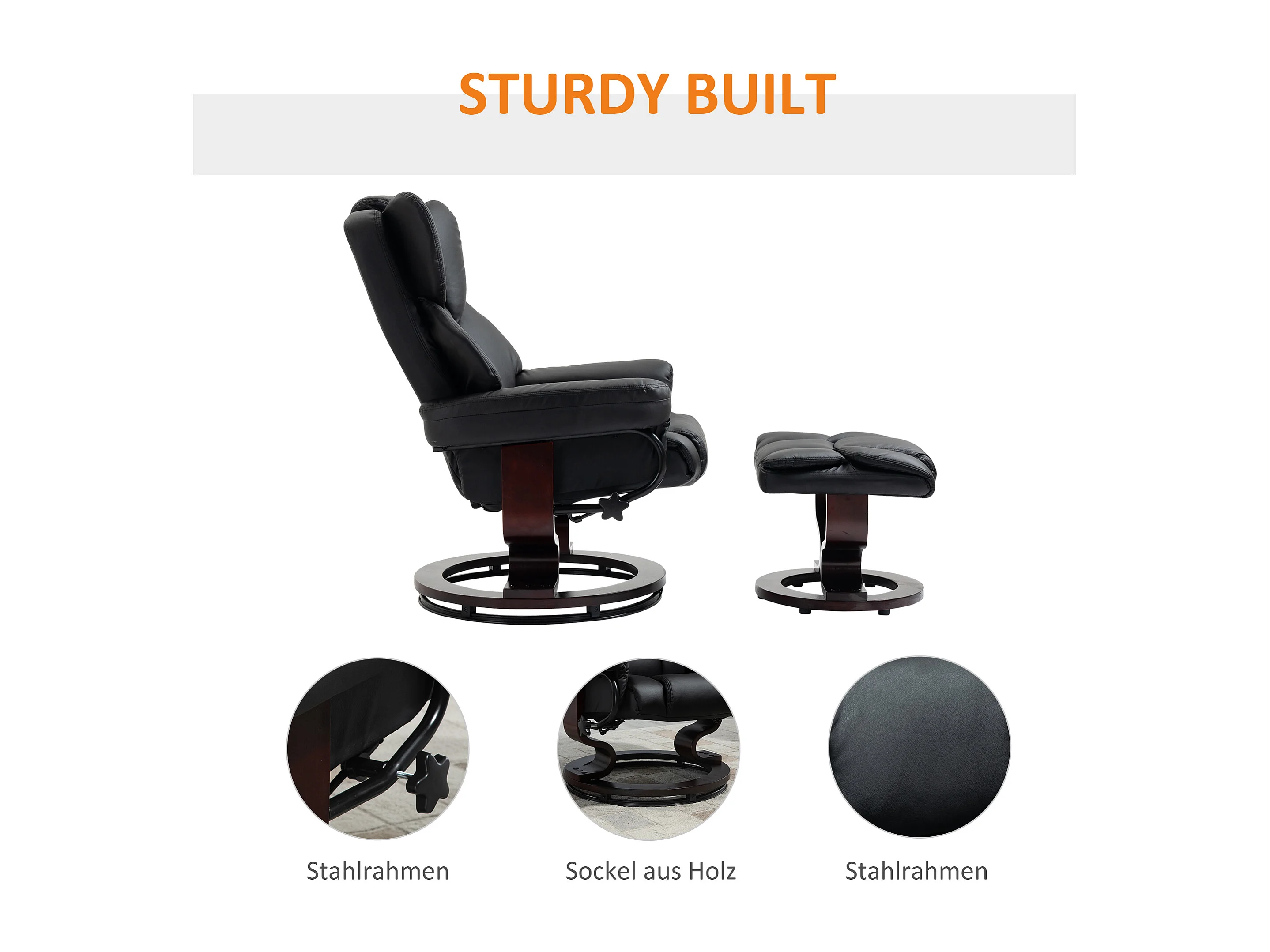 Relaxsessel Drehbar mit Hocker, Liegefunktion, Kunstleder, Schwarz (80x79x100 cm)