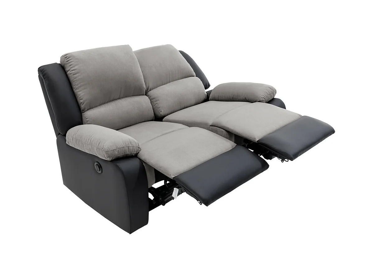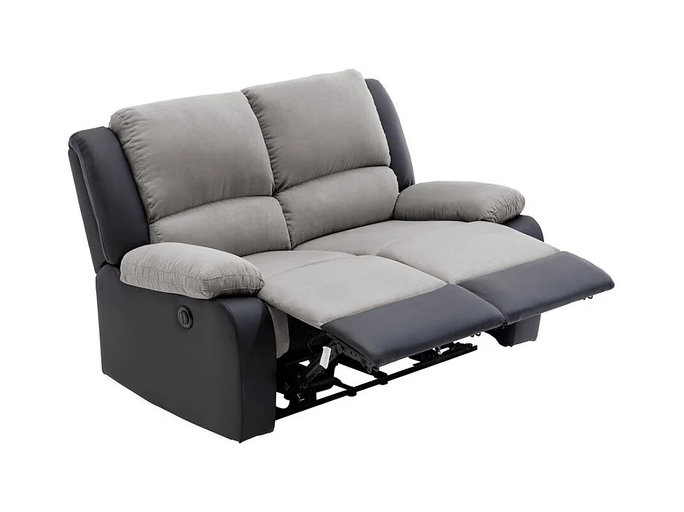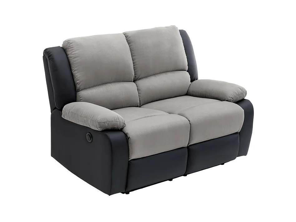Canapé de Relaxation électrique 2 places Microfibre et Simili Léo - Gris et Noir - L143 x 93 x 96cm - Loungitude
