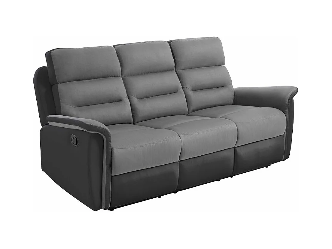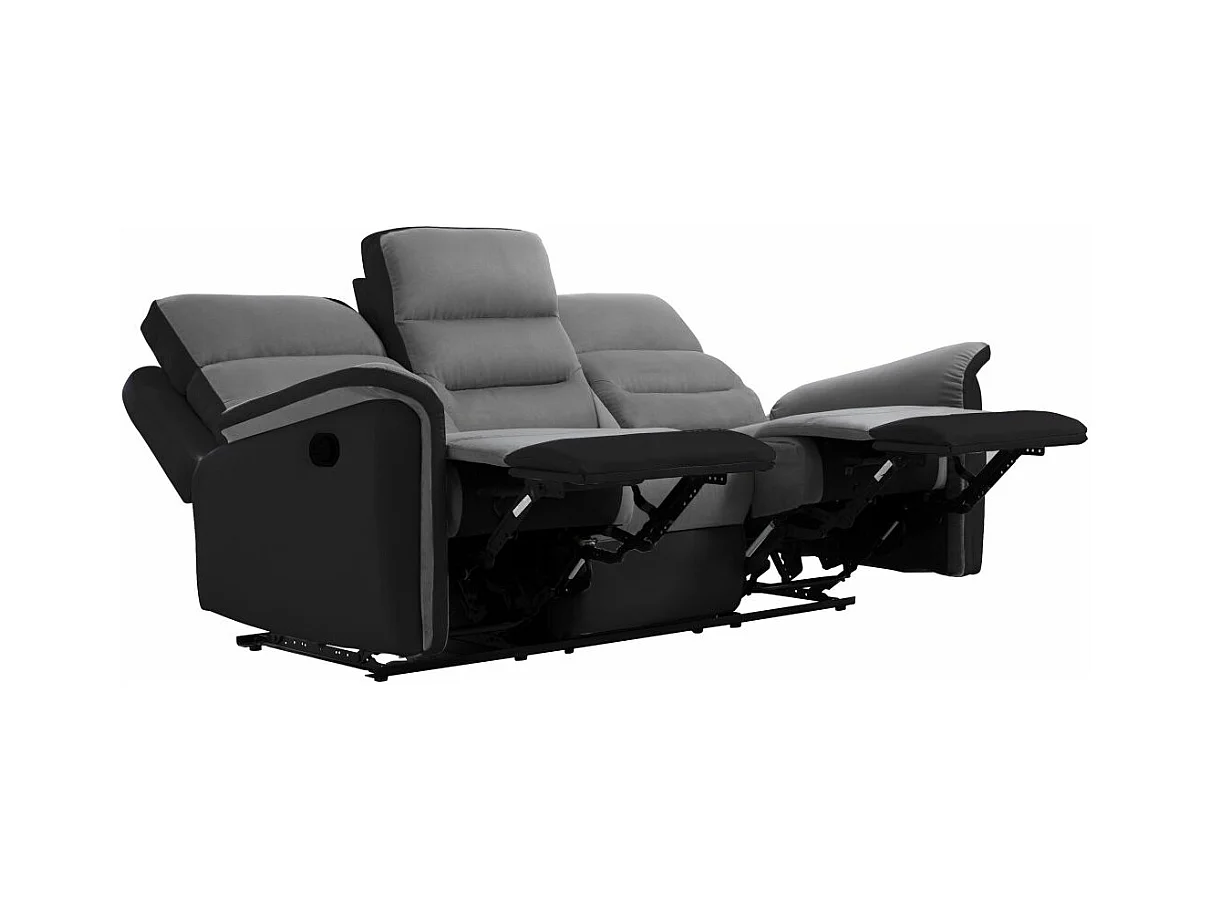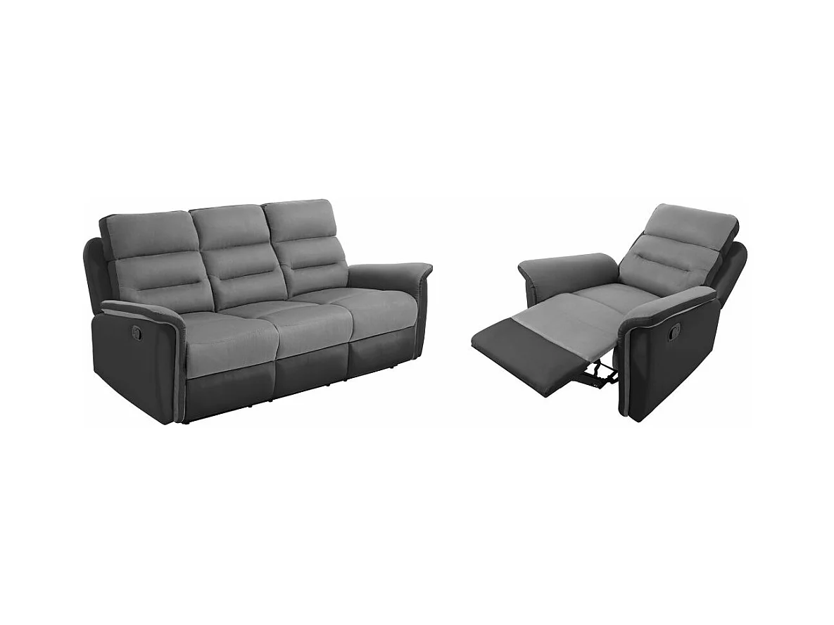 Ensemble canapé relax manuel Léon 3 places + fauteuil manuel en microfibre et simili Gris/noir - Loungitude