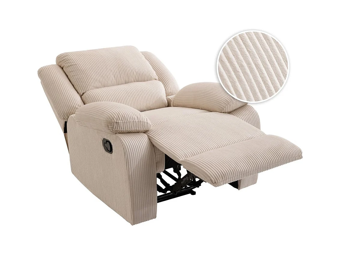 RELAXXO - Fauteuil relaxation manuel LEO en velours côtelé - Beige