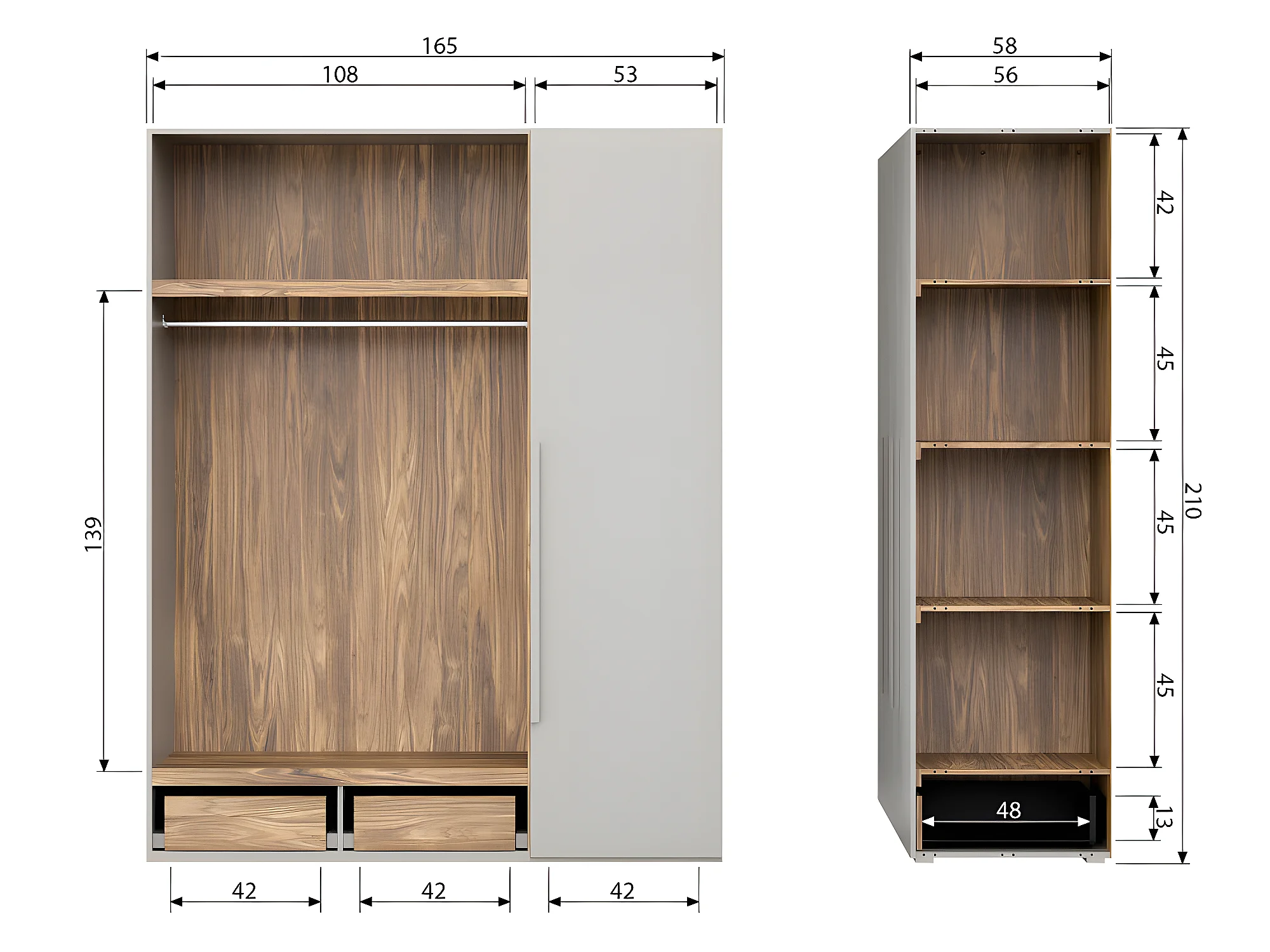 Rens - Armoire 3 portes en bois H210cm - Gris clair