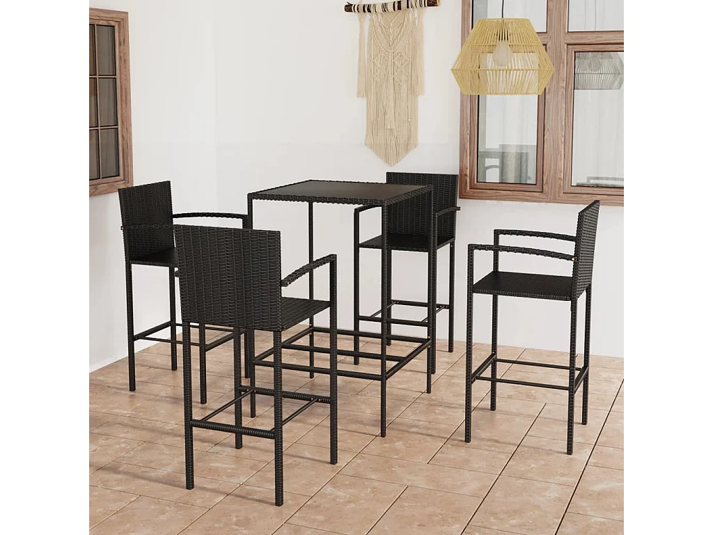 Renzo Giuseppe Ensemble de bar de jardin 5 pcs Résine tressée Noir