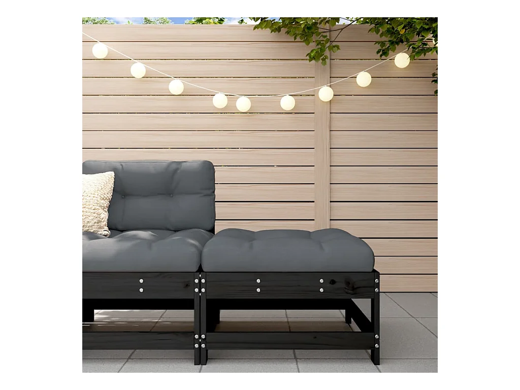 Repose-pied de jardin avec coussin noir bois de pin massif LQF37921
