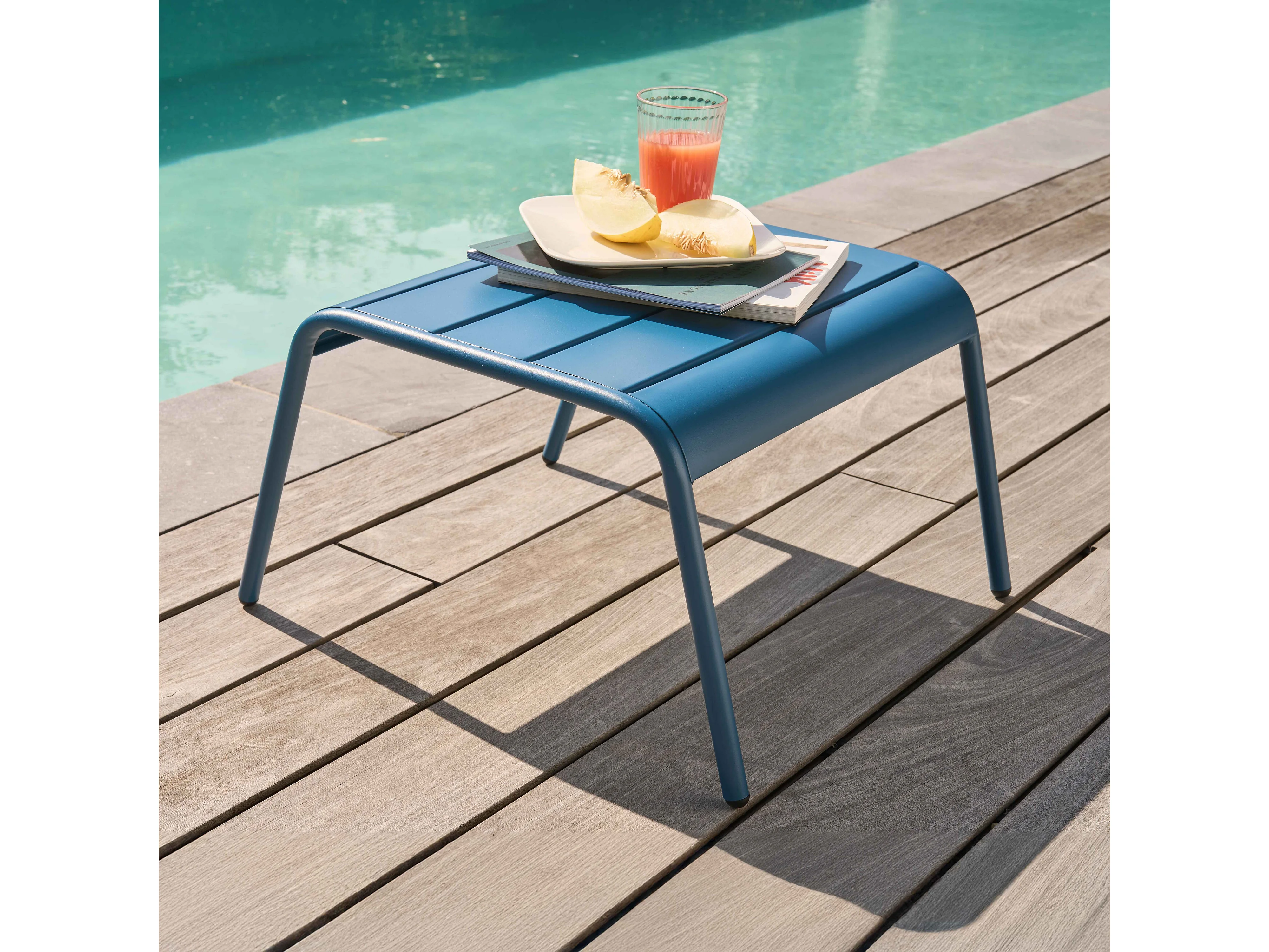 Dirax Repose-pieds/Tabouret avec compartiment de rangement bleu et marron.