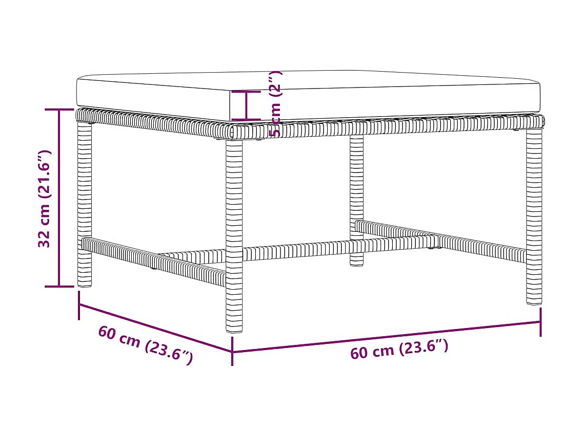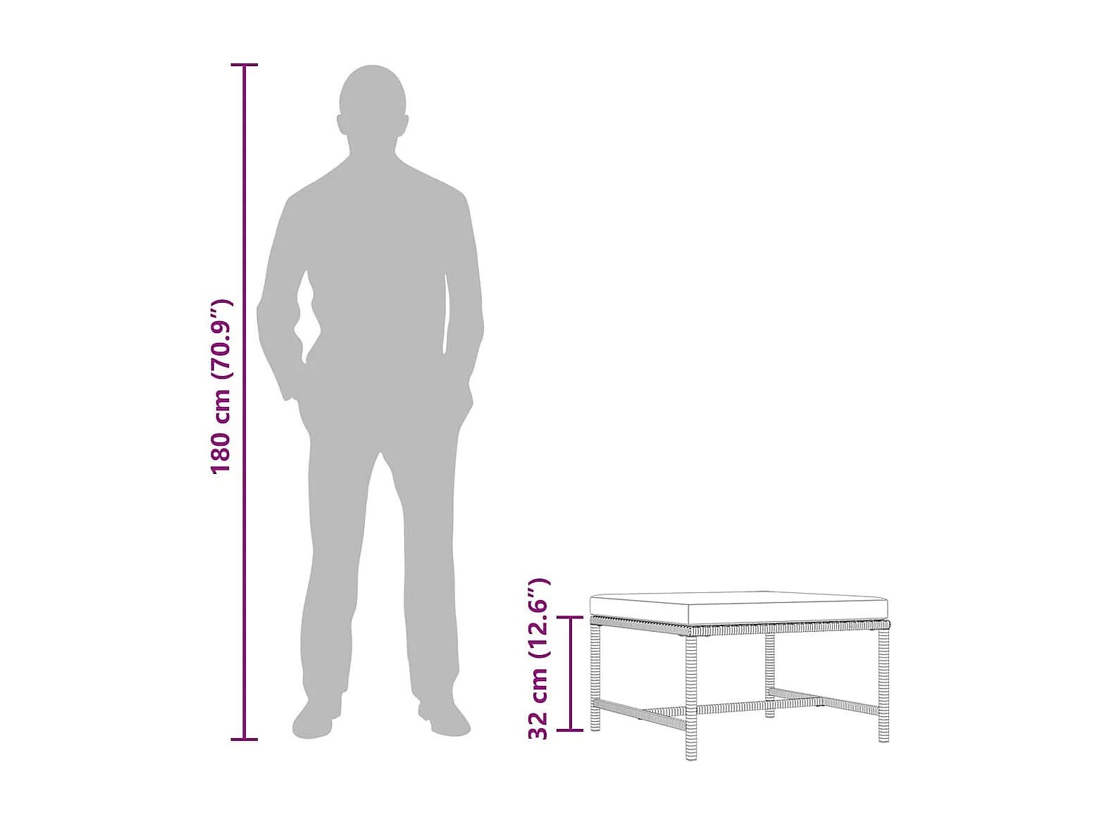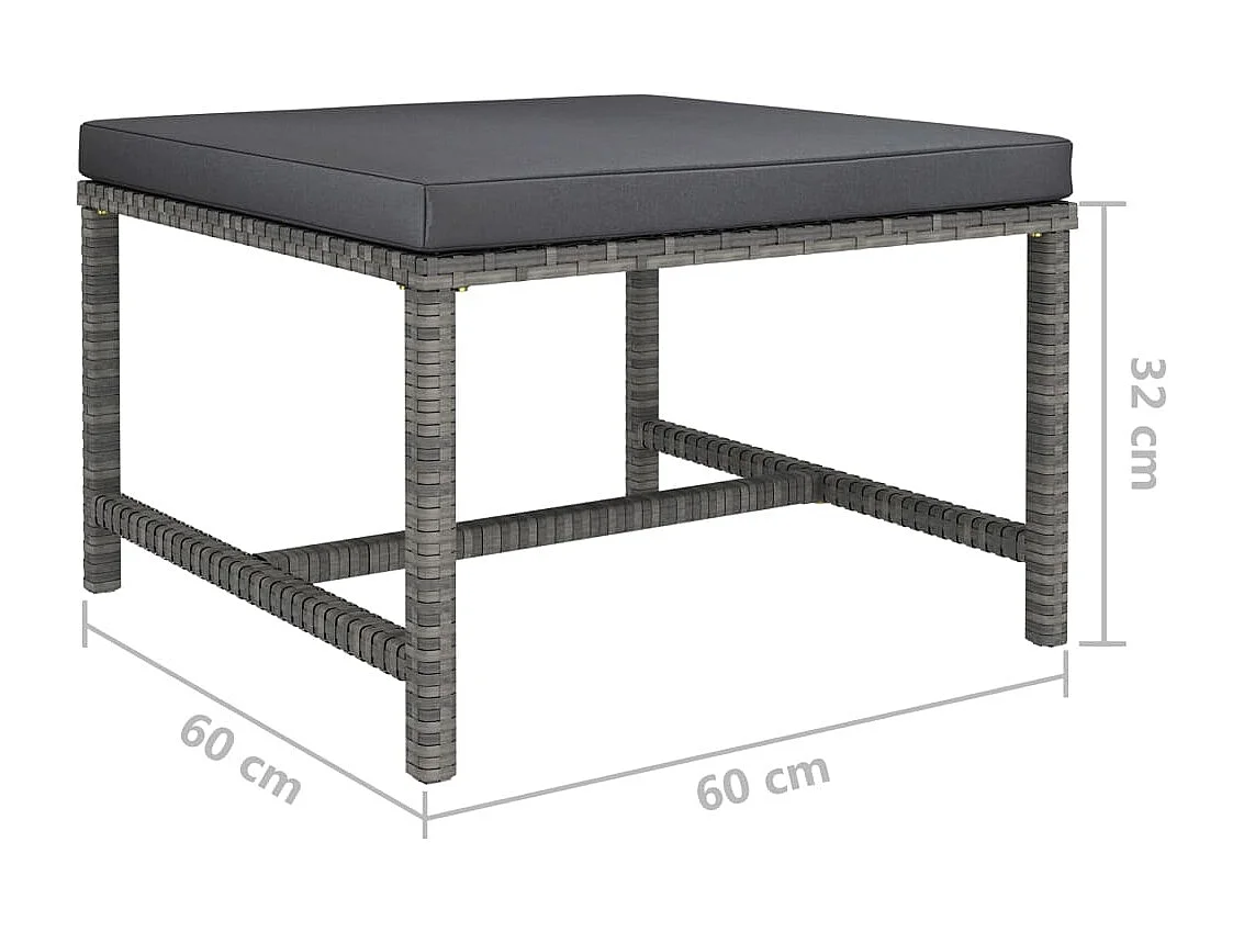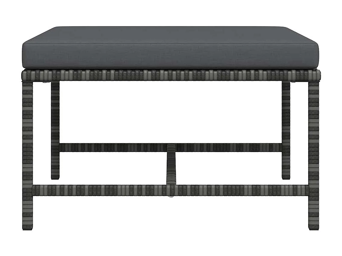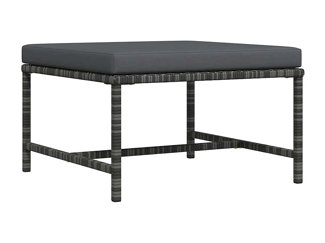 Repose-pied de jardin et coussin Gris 70x70x30cm Résine tressée