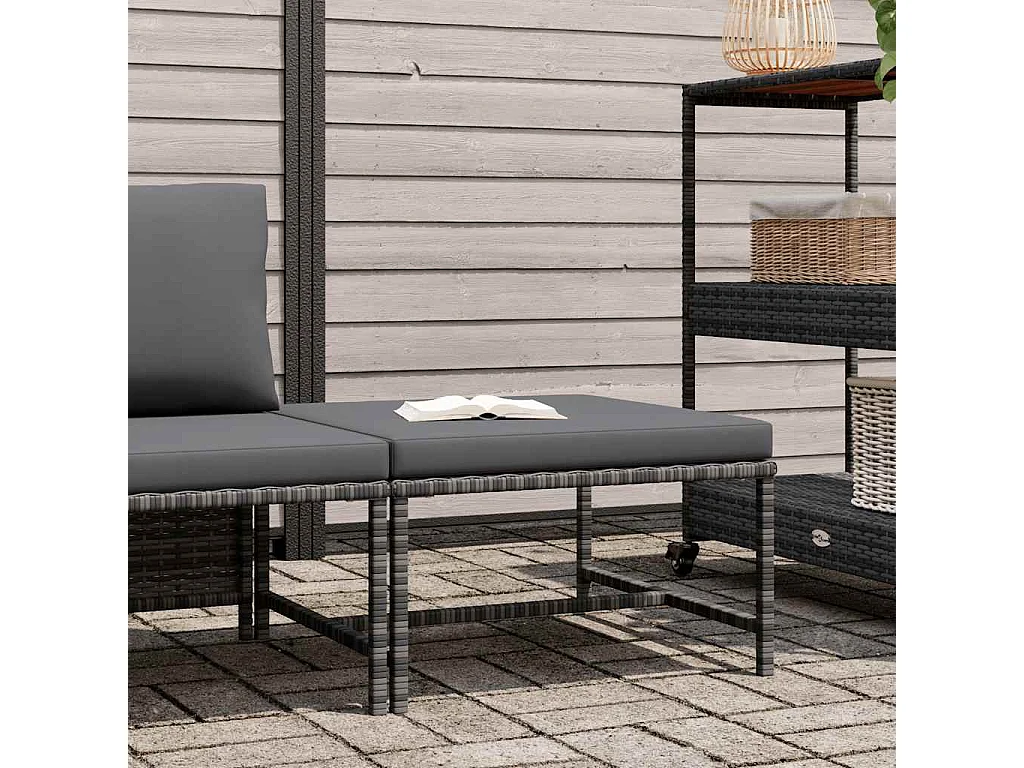 Repose-pied sectionnel avec coussin Gris Résine tressée