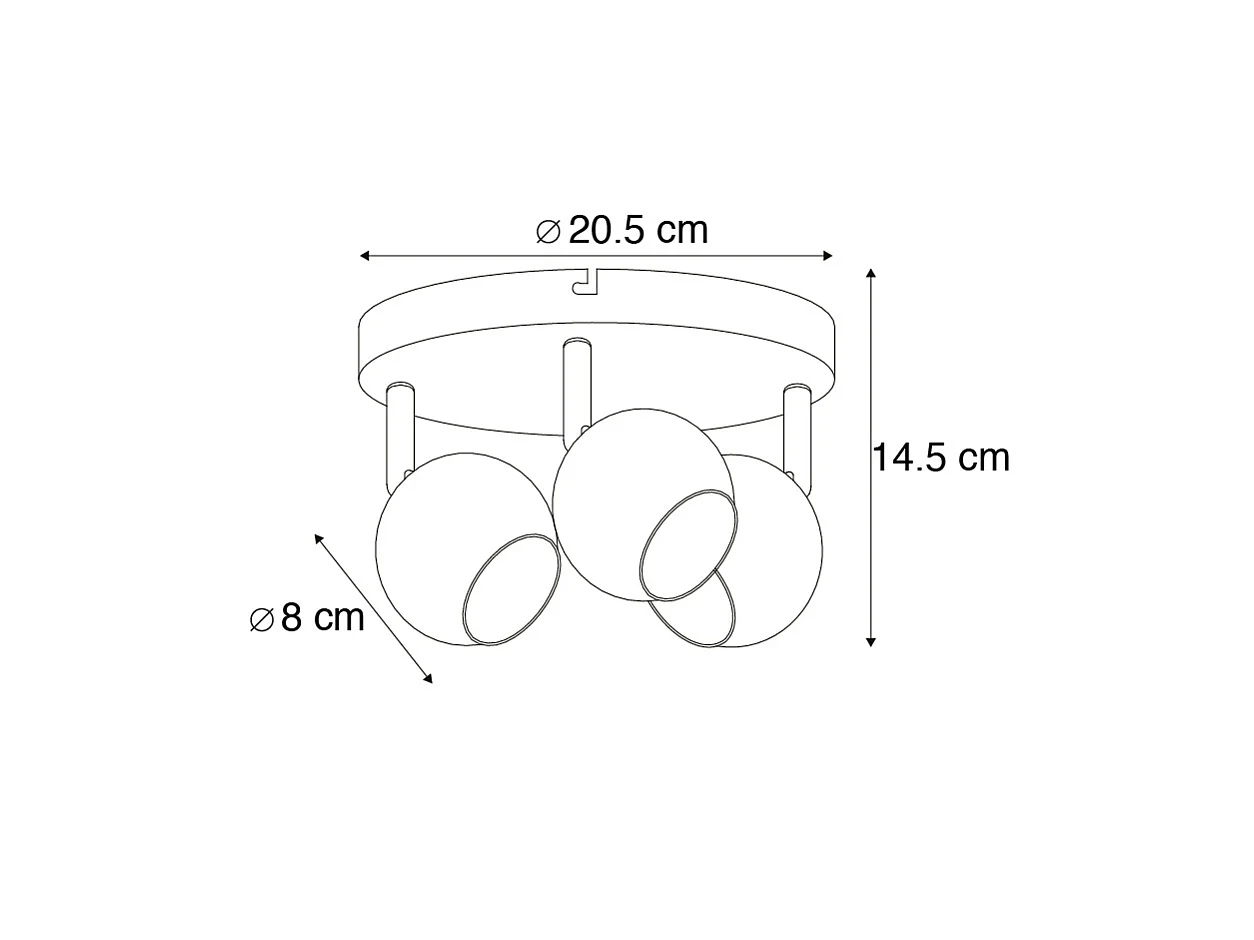 Rétro spot en laiton rond avec plaque de plafond 3 lumières - Gissi