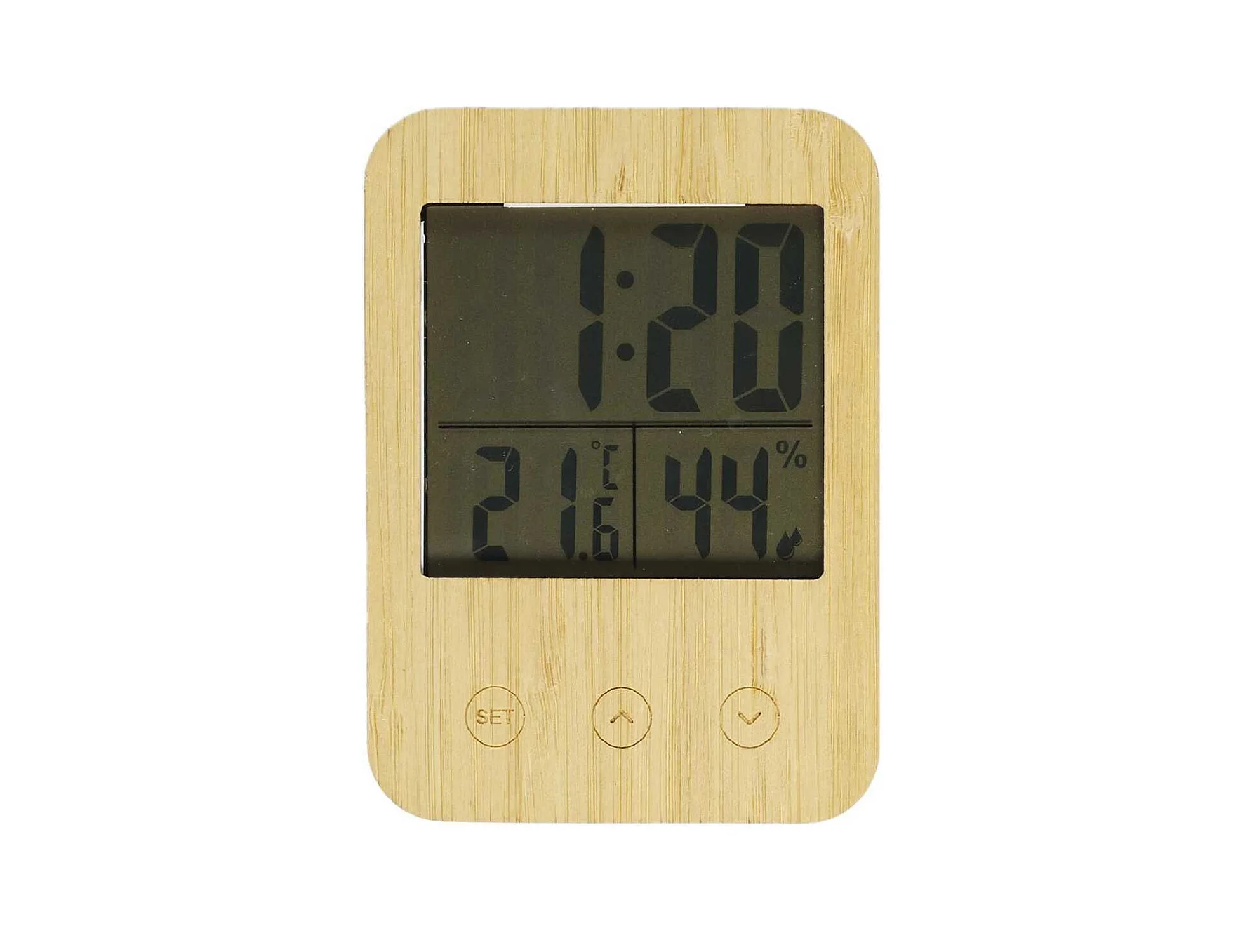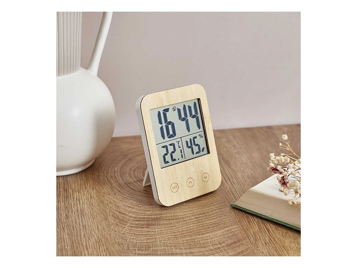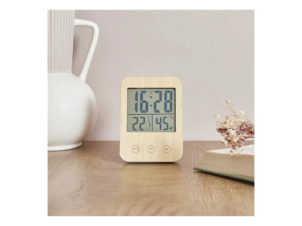 Réveil classique avec haut-parleur Bluetooth et chargeur de téléphone - Bambou