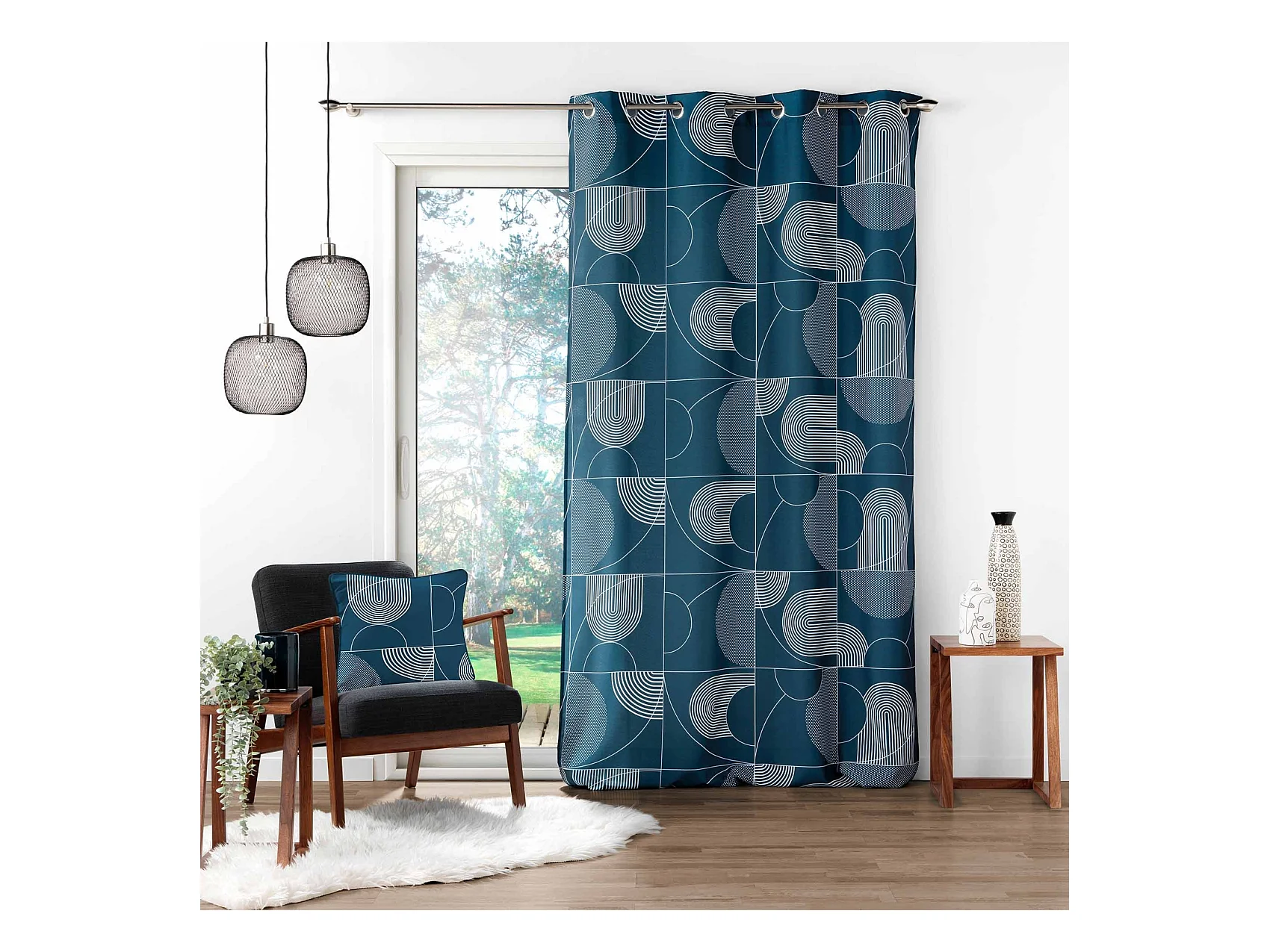 Rideau à Œillets "Esquisse" 140x260cm Bleu