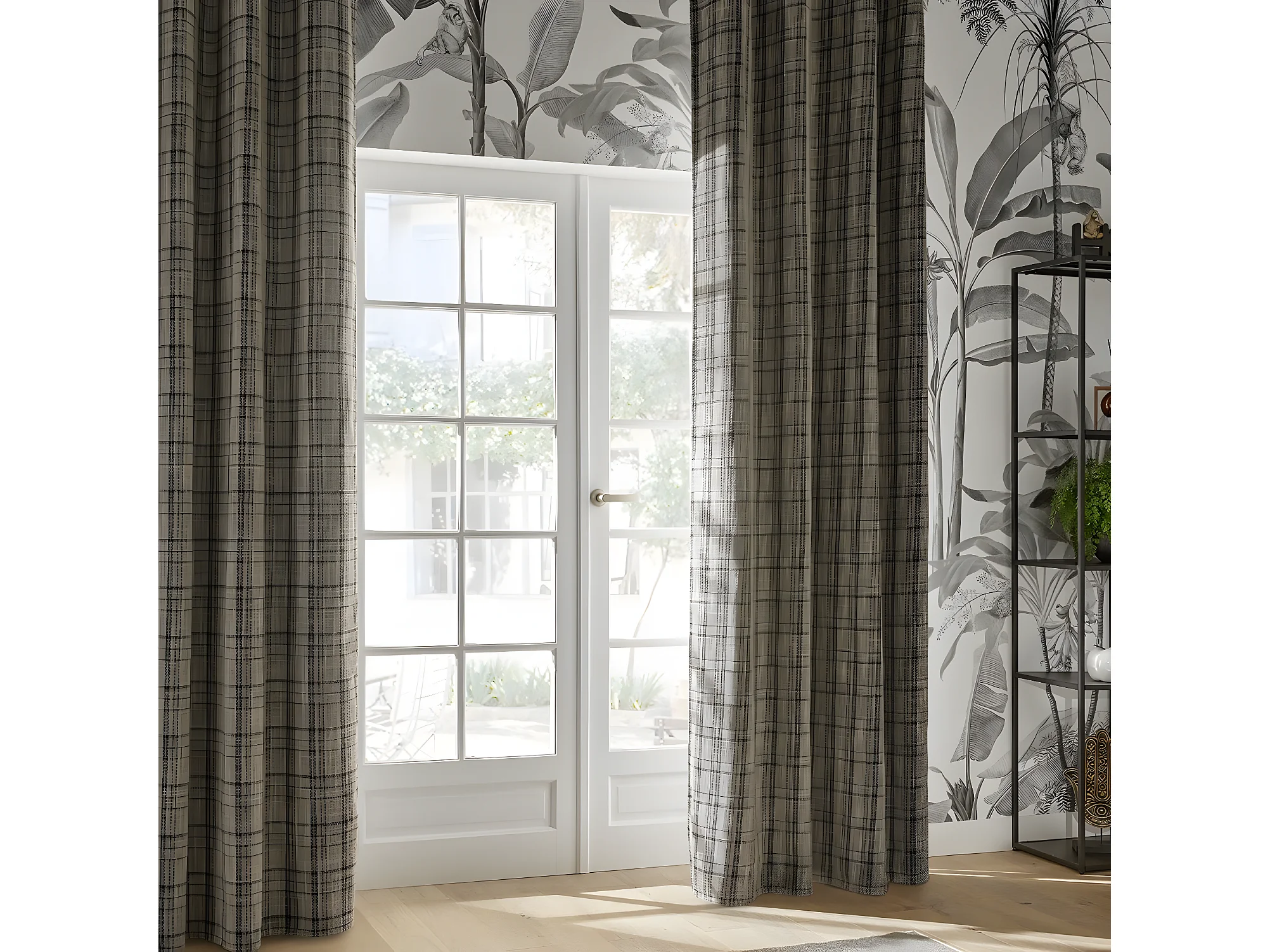 Rideau à œillets Occultant Gris Foncé et Beige Lin 140 x 260 cm