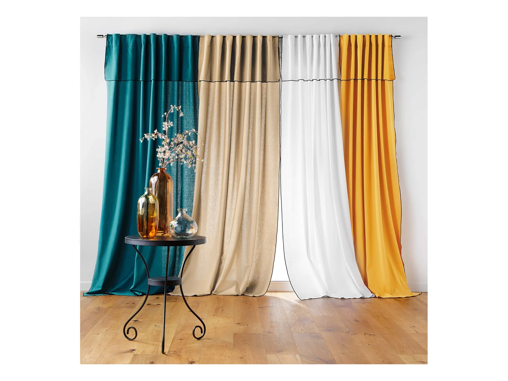 Rideau à Œillets Avec Pompons "Iliade" 140x240cm Blanc & Gris