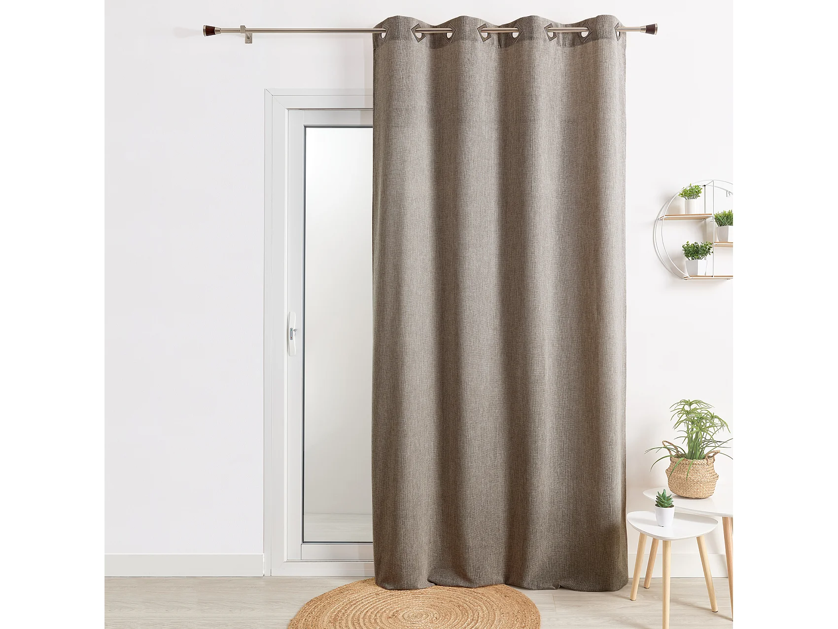 Rideau Taupe en Shantung Brodé 'Ronds Mêlés'