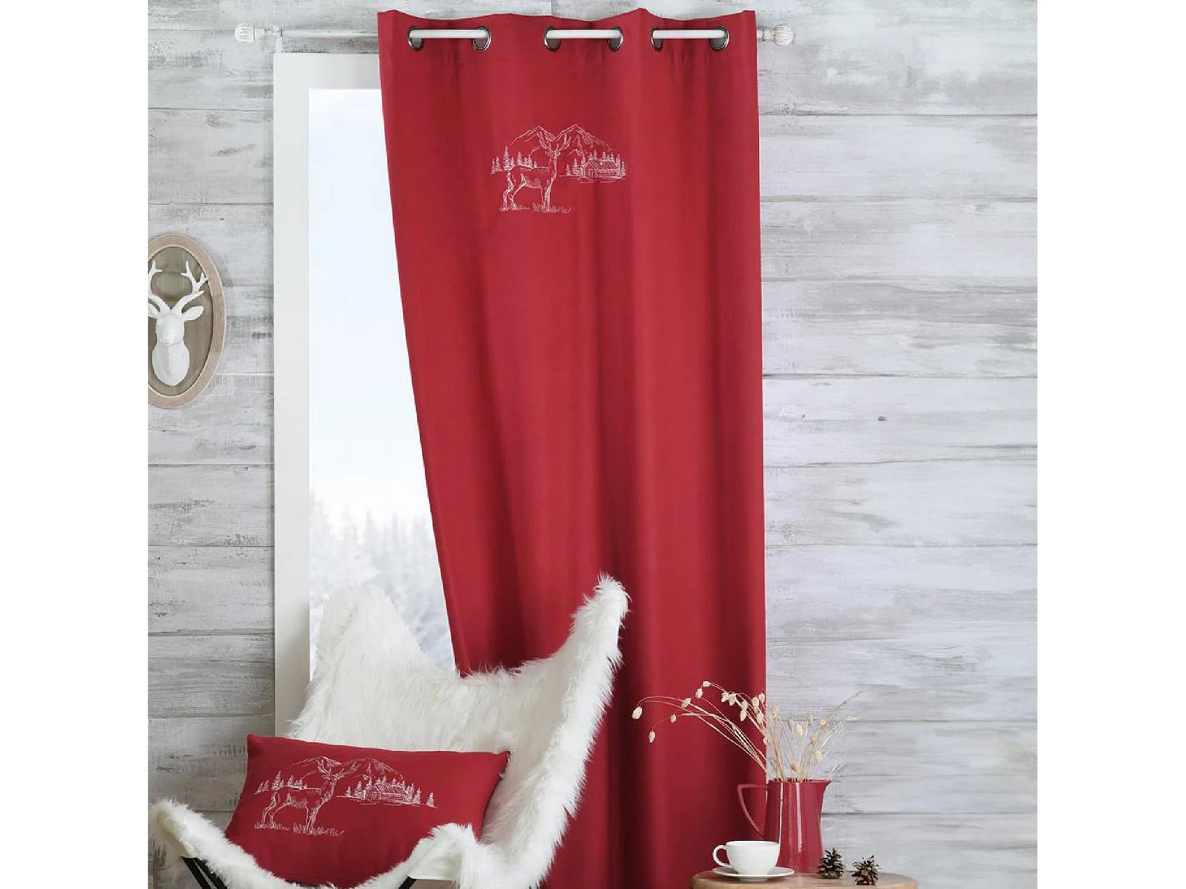 Rideau cerf esprit chalet effet laine brodé