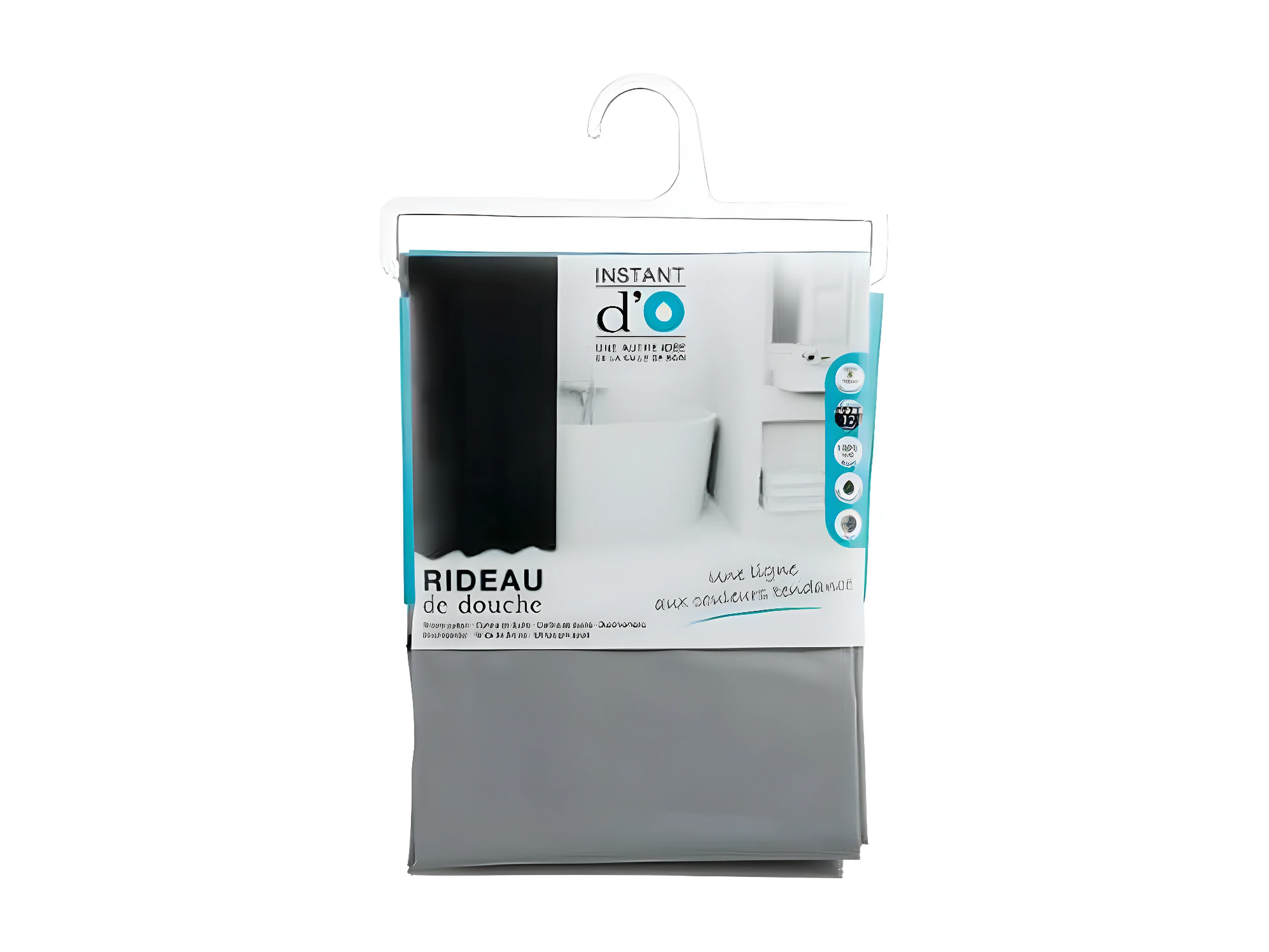 Rideau de Douche PEVA "Vitamine II" 180x200cm Gris Clair