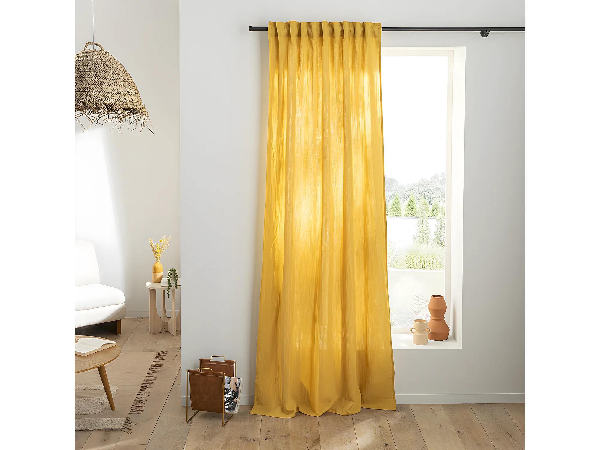 Rideau uni en gaze de coton pattes cachées à l'unité 140x260cm jaune