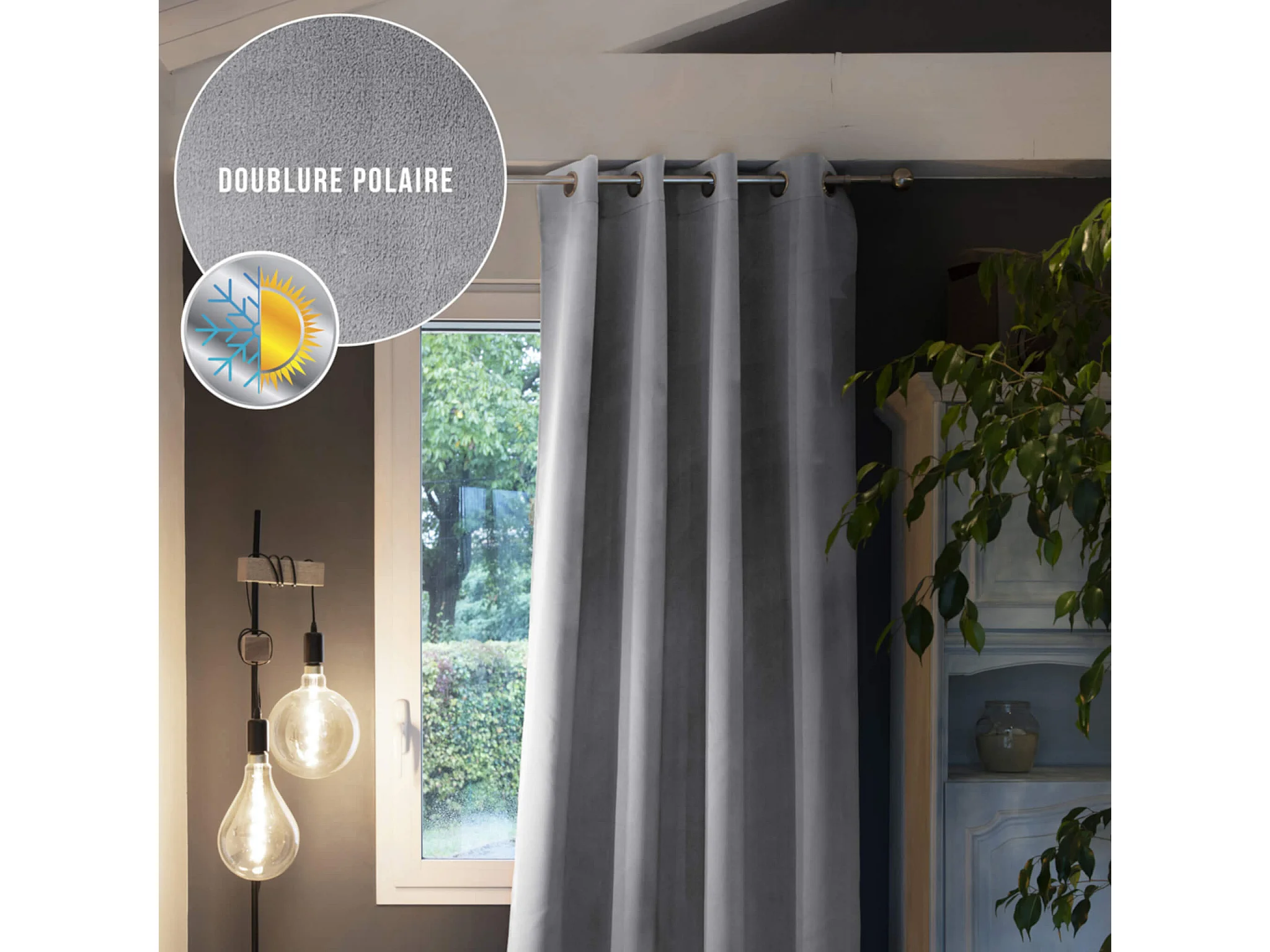 Rideau à oeillets 135X250 cm OCCULTANT gris, par Soleil d'ocre
