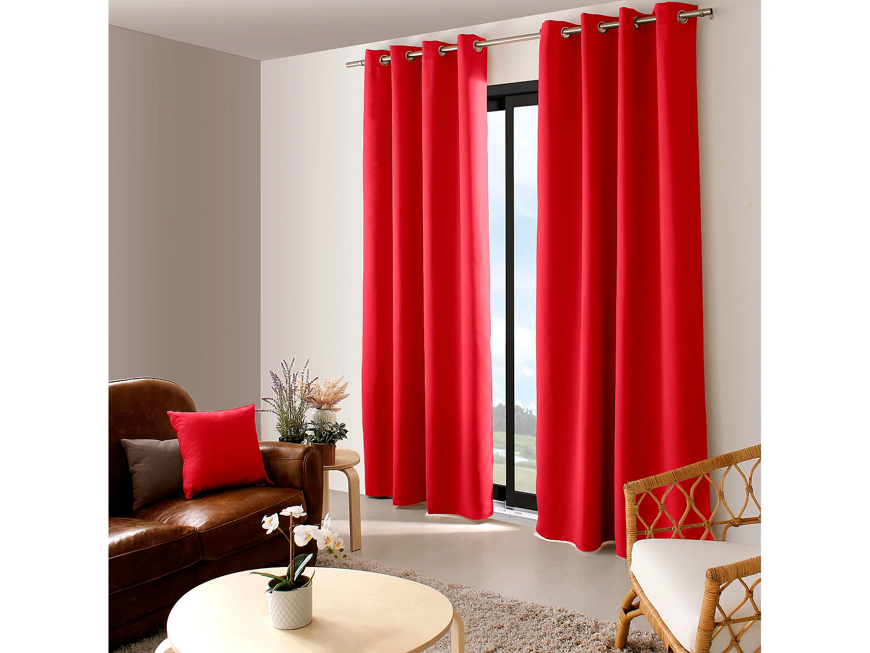 Rideau Occultant à Œillets "Reglisse" 140x240cm Rouge