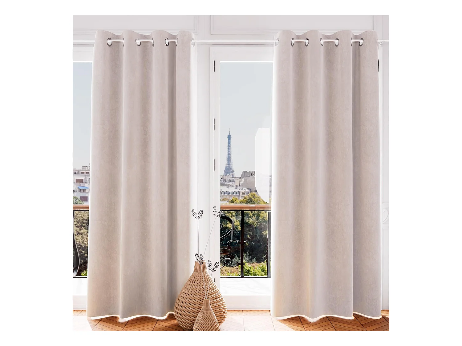 Rideau oeillets en velours VELVET naturel, par Soleil d'ocre