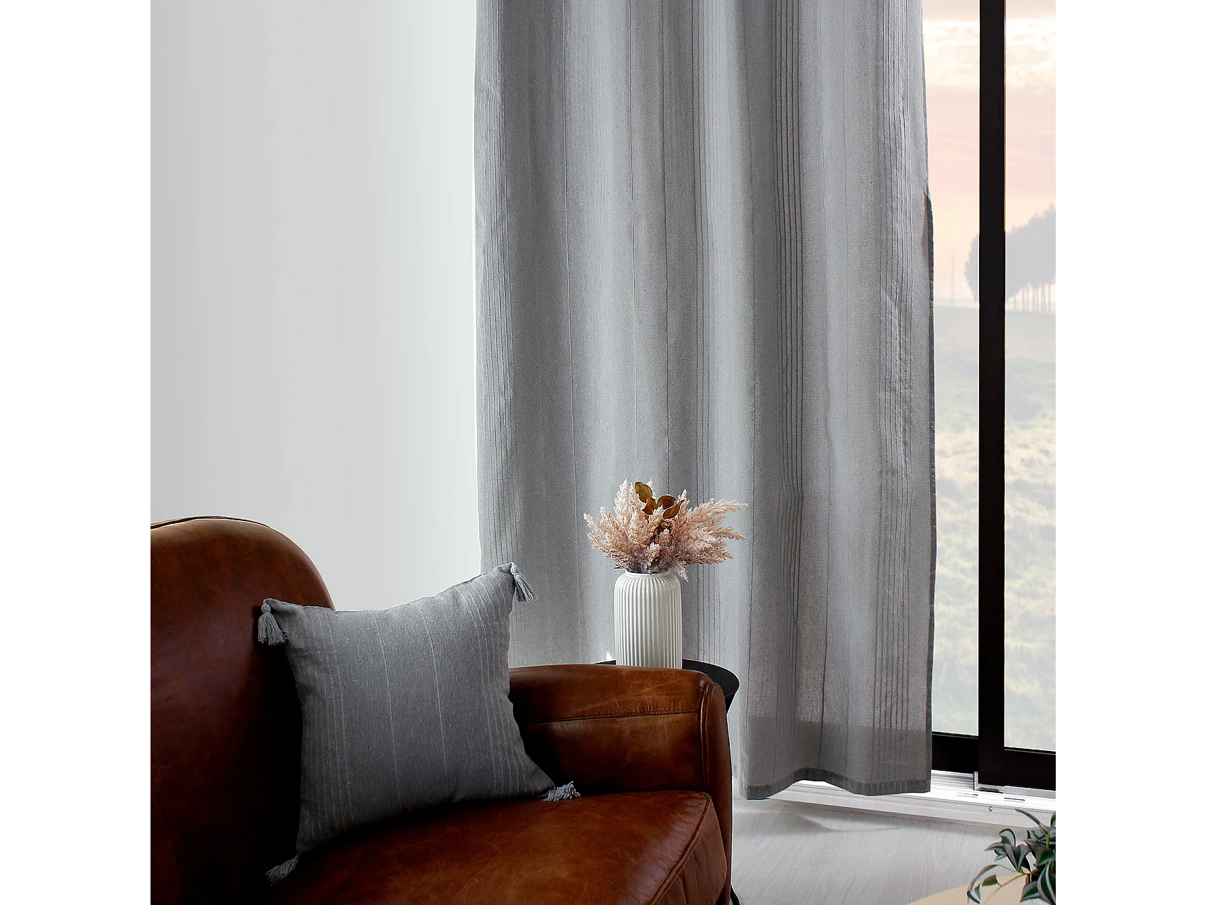 Rideau à Œillets Avec Pompons "Iliade" 140x240cm Blanc & Gris