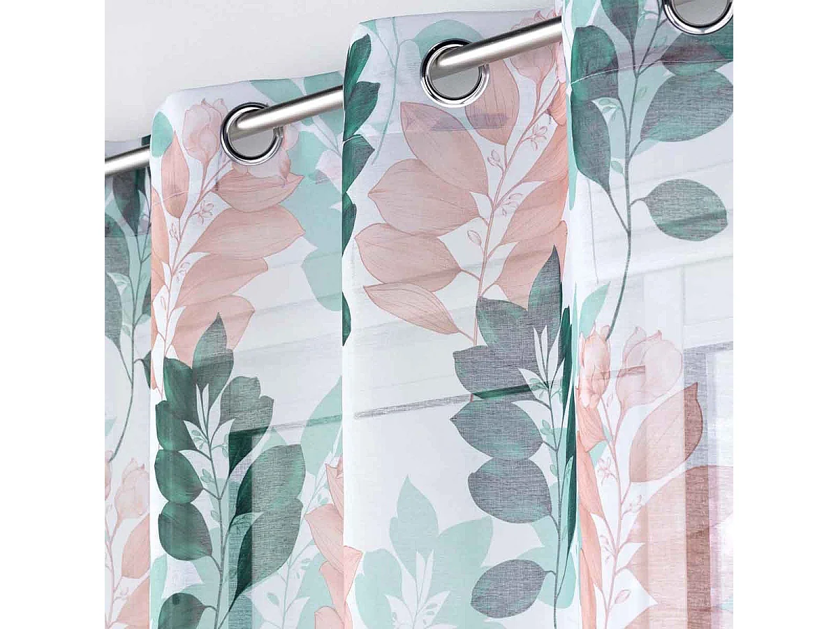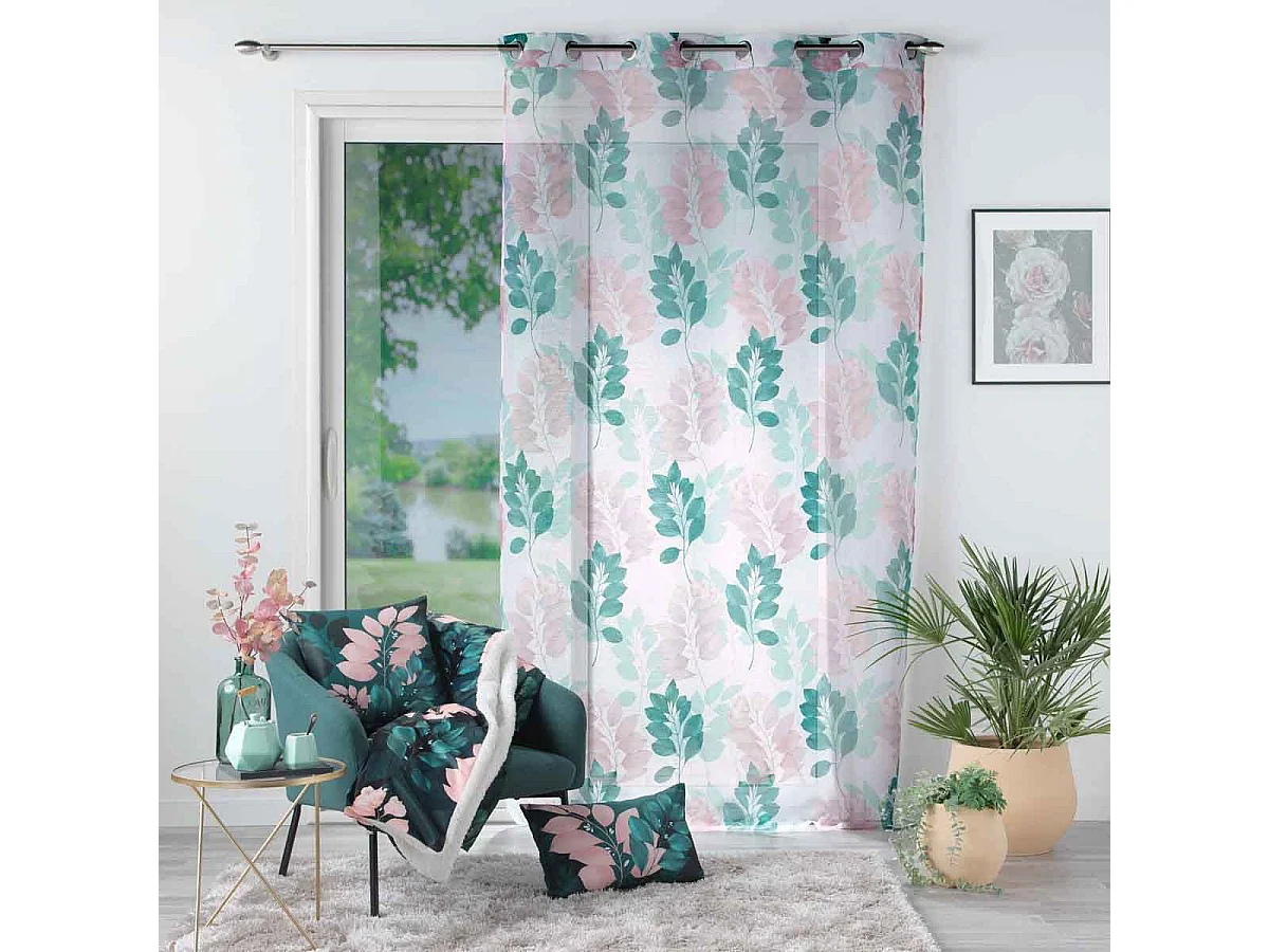 Rideau Voilage à Œillets "Belline" 140x240cm Blanc & Émeraude