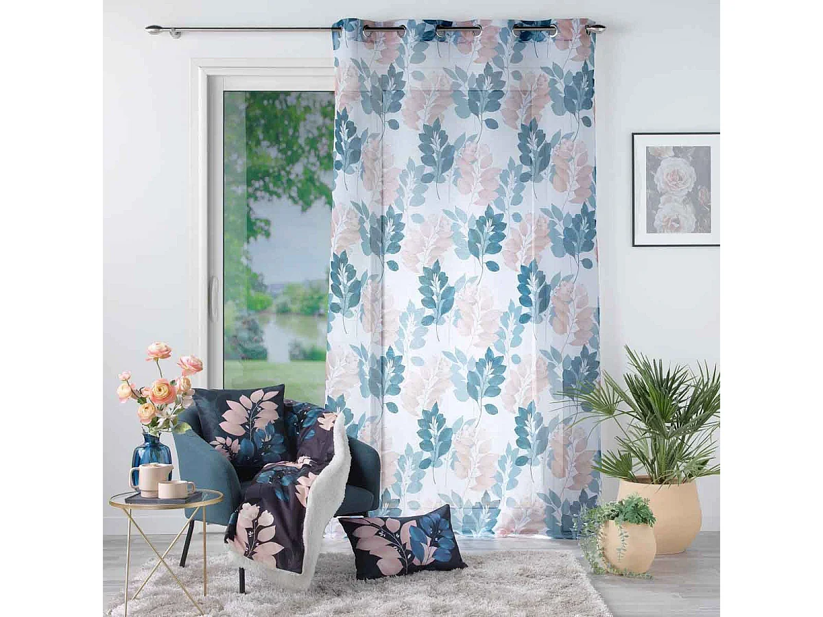 Rideau Voilage à Œillets "Belline" 140x280cm Blanc & Bleu