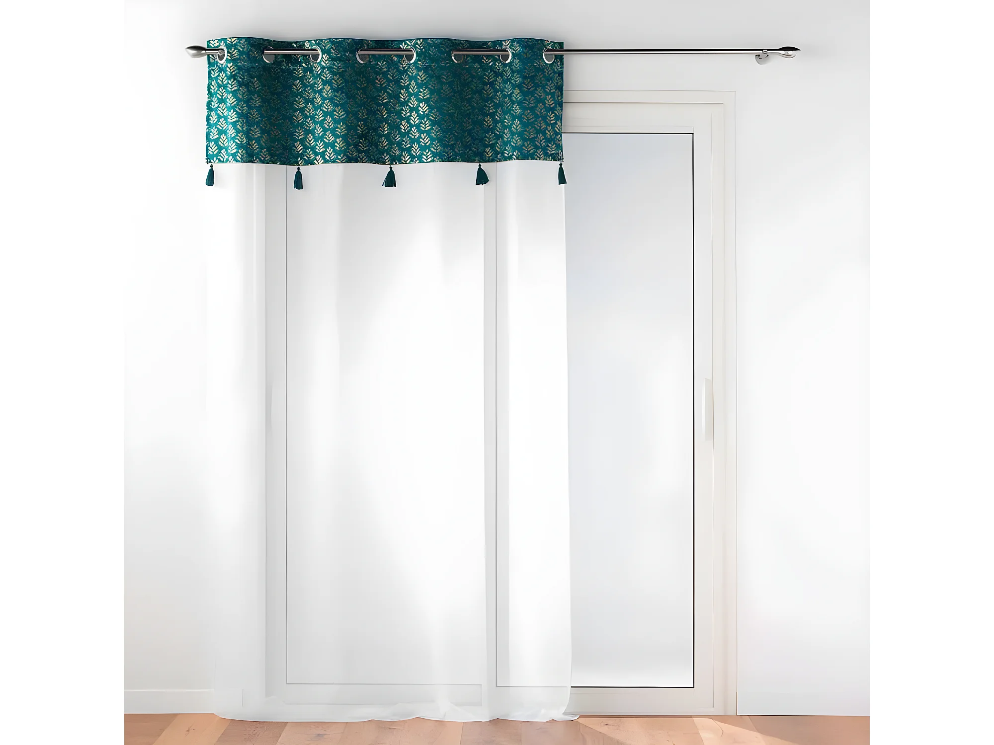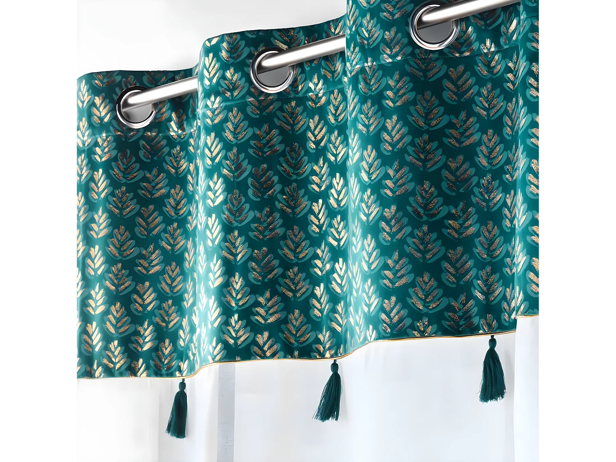 Rideau à œillets Occultant en Velours Bleu canard motif en relief 140 x 260 cm