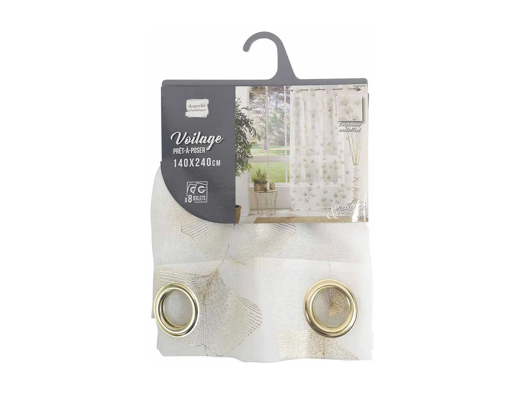 Rideau Voilage à Œillets "'Ginkgold" 140x240cm Blanc