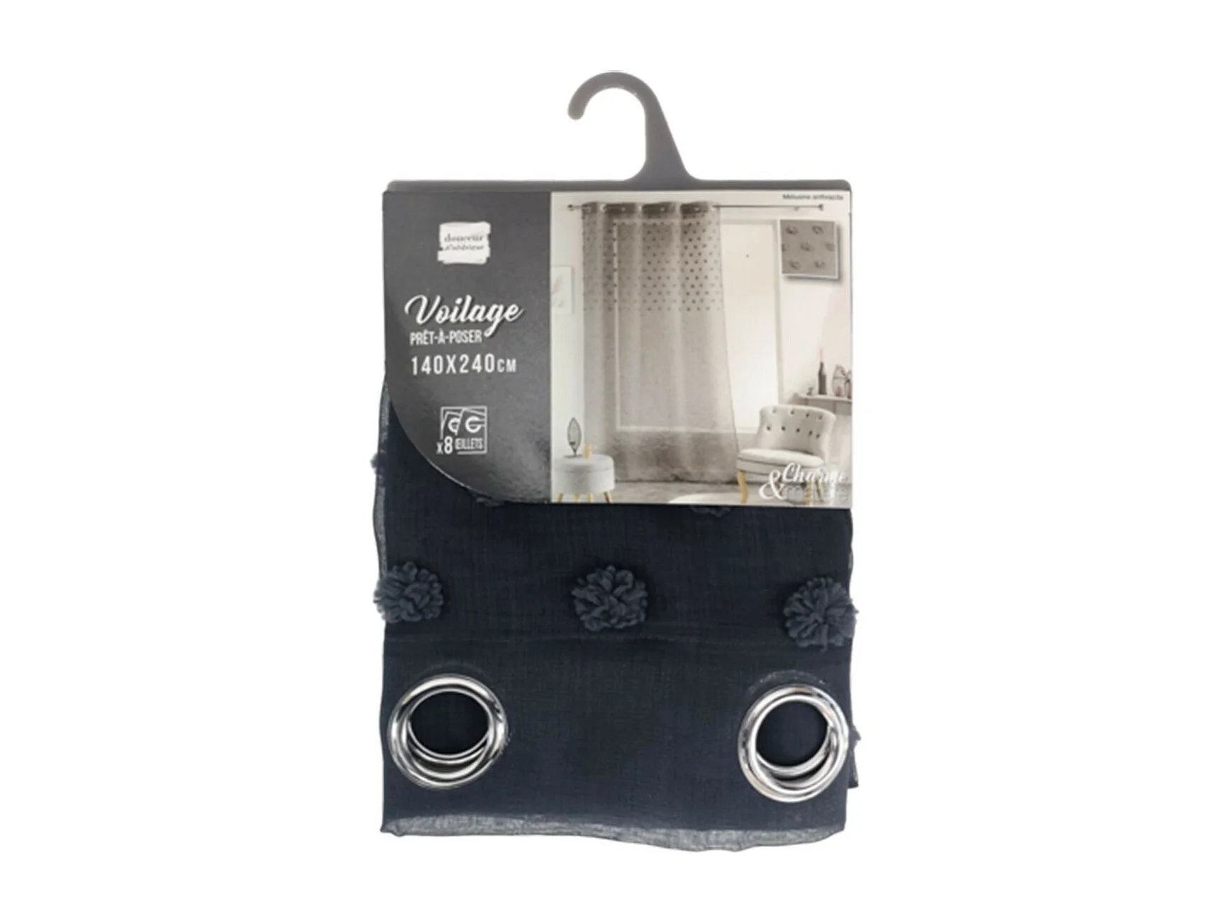 Rideau Voilage à Œillets "Mélusine" 140x240cm Anthracite