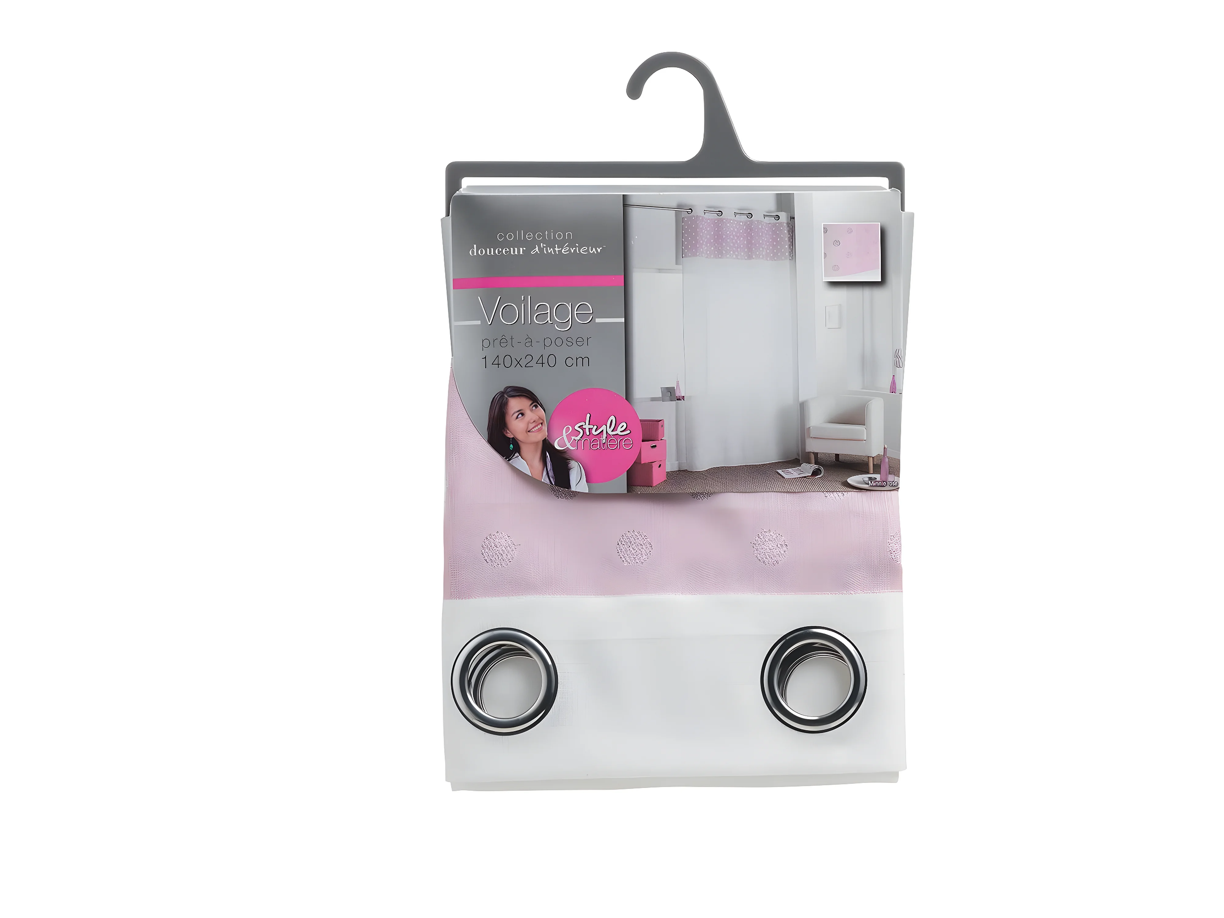 Rideau Voilage à Œillets "Fantaisie Louise" 140x240cm Rose