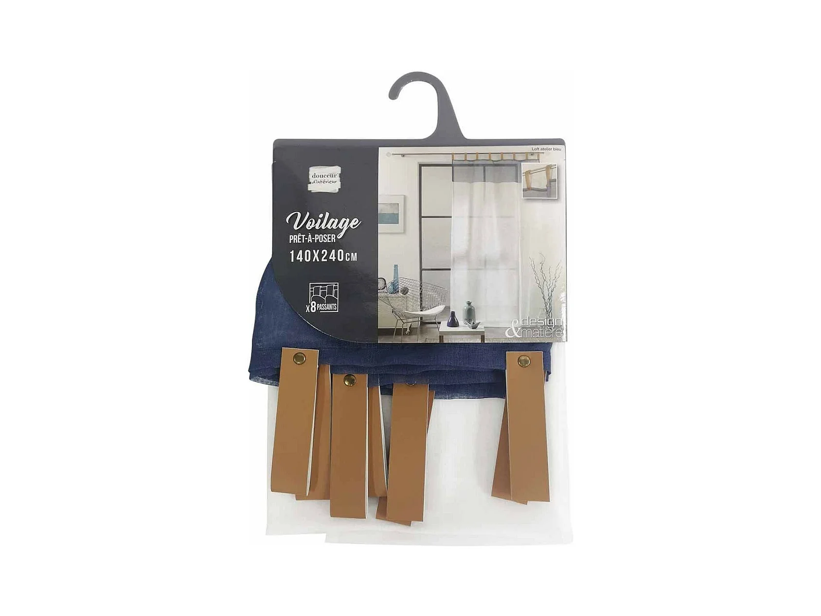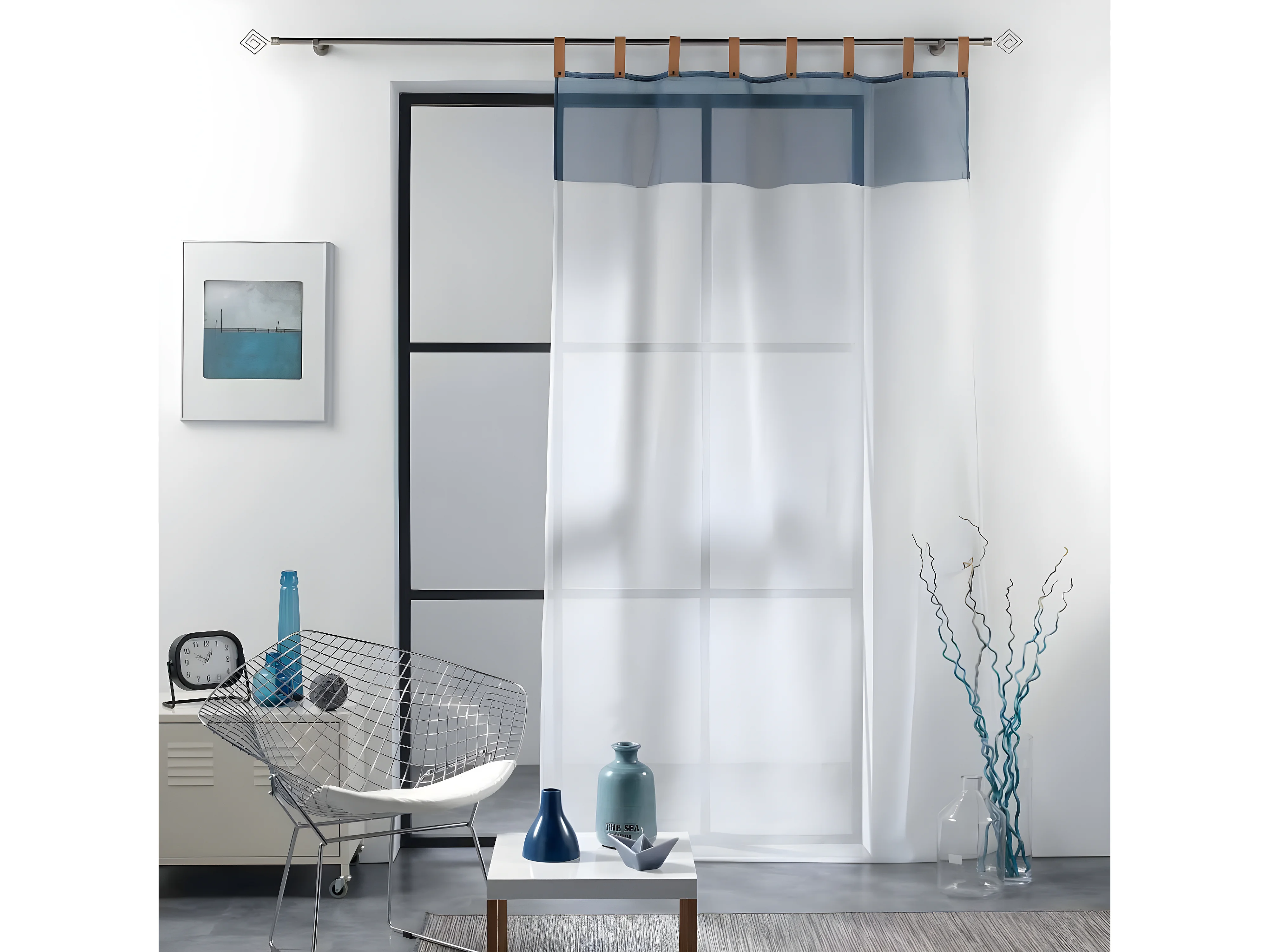 Rideau Voilage à Passants "Loft Atelier" 140x240cm Bleu