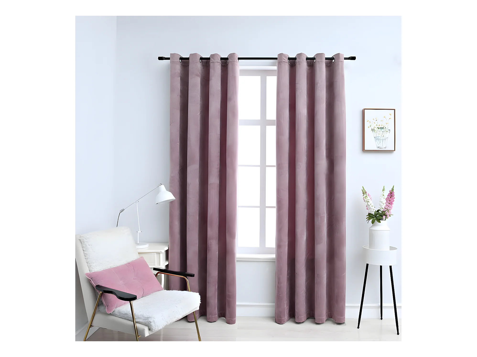 Rideau occultant avec anneaux en métal Velours Rose 290x245 cm QBH97276