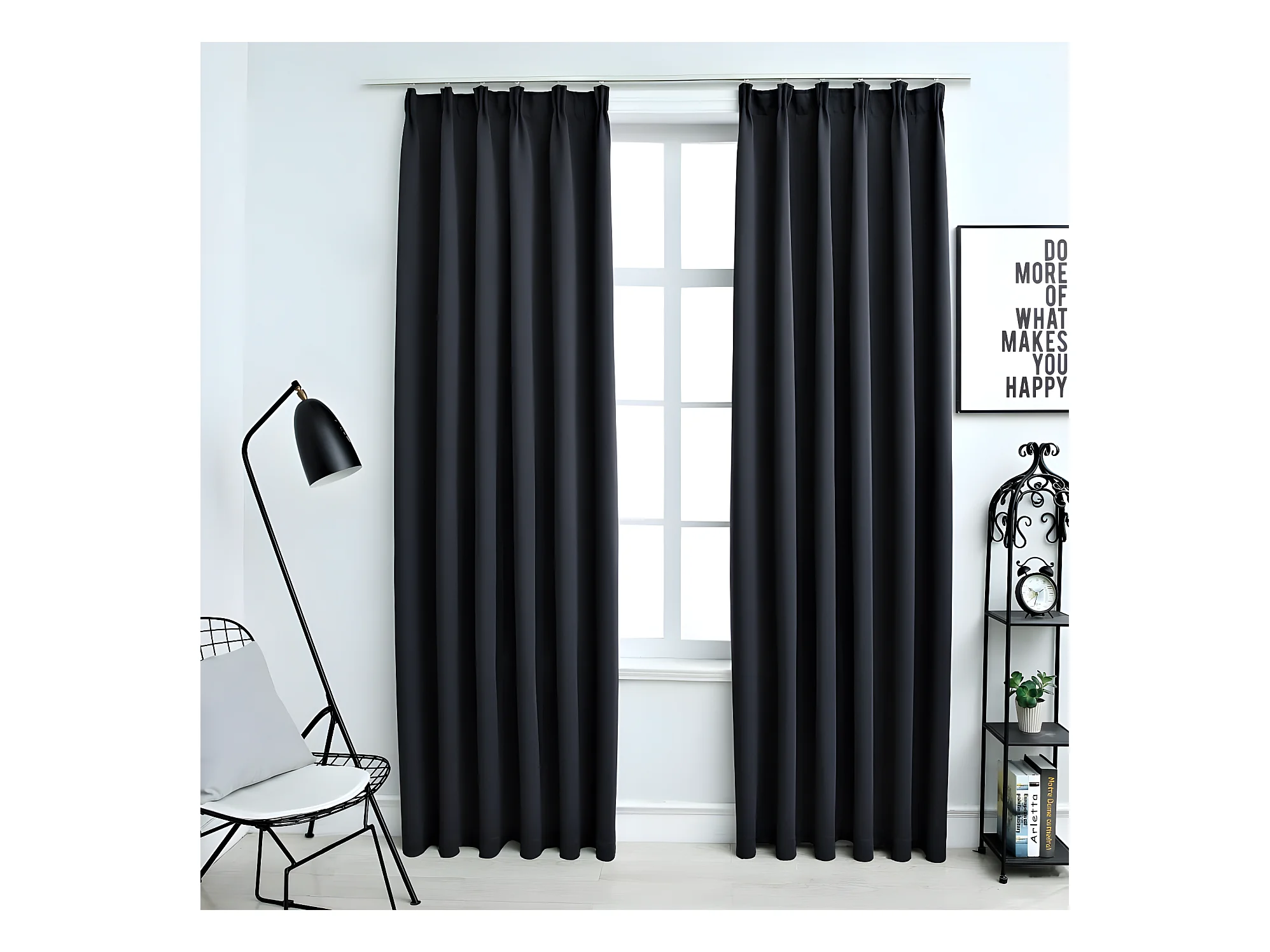 Rideaux occultants avec crochets 2 pcs Noir 140x245 cm QBH74502