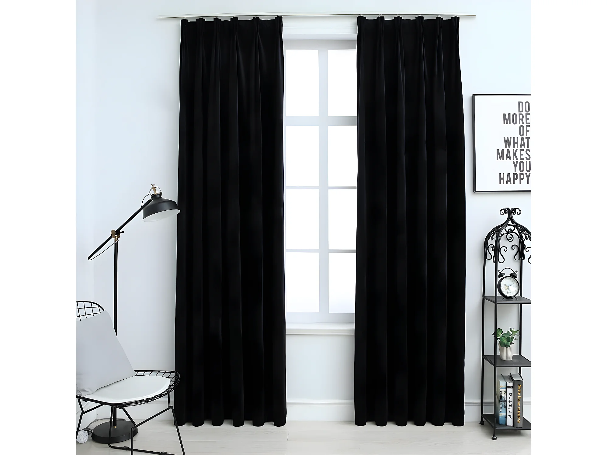 Rideaux occultants avec crochets 2 pcs Velours Noir 140x175 cm QBH27327