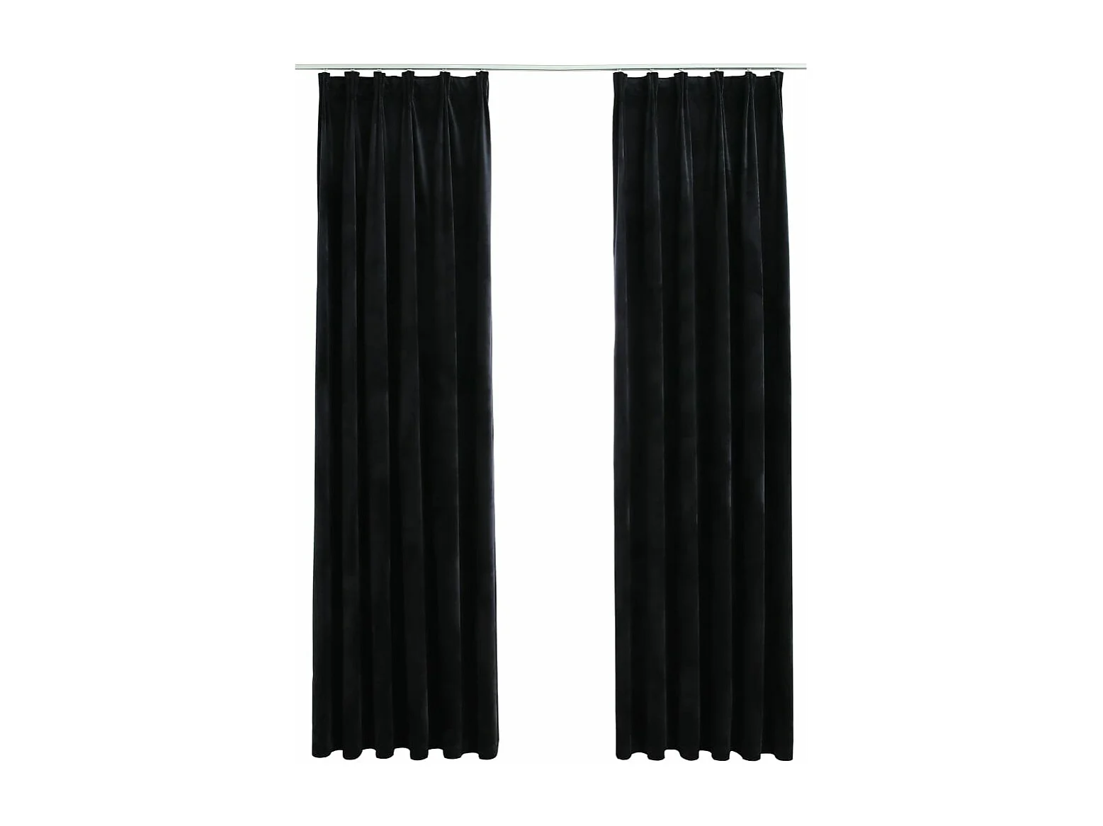 Rideaux occultants avec crochets 2 pcs Velours Noir 140x245 cm QBH24309