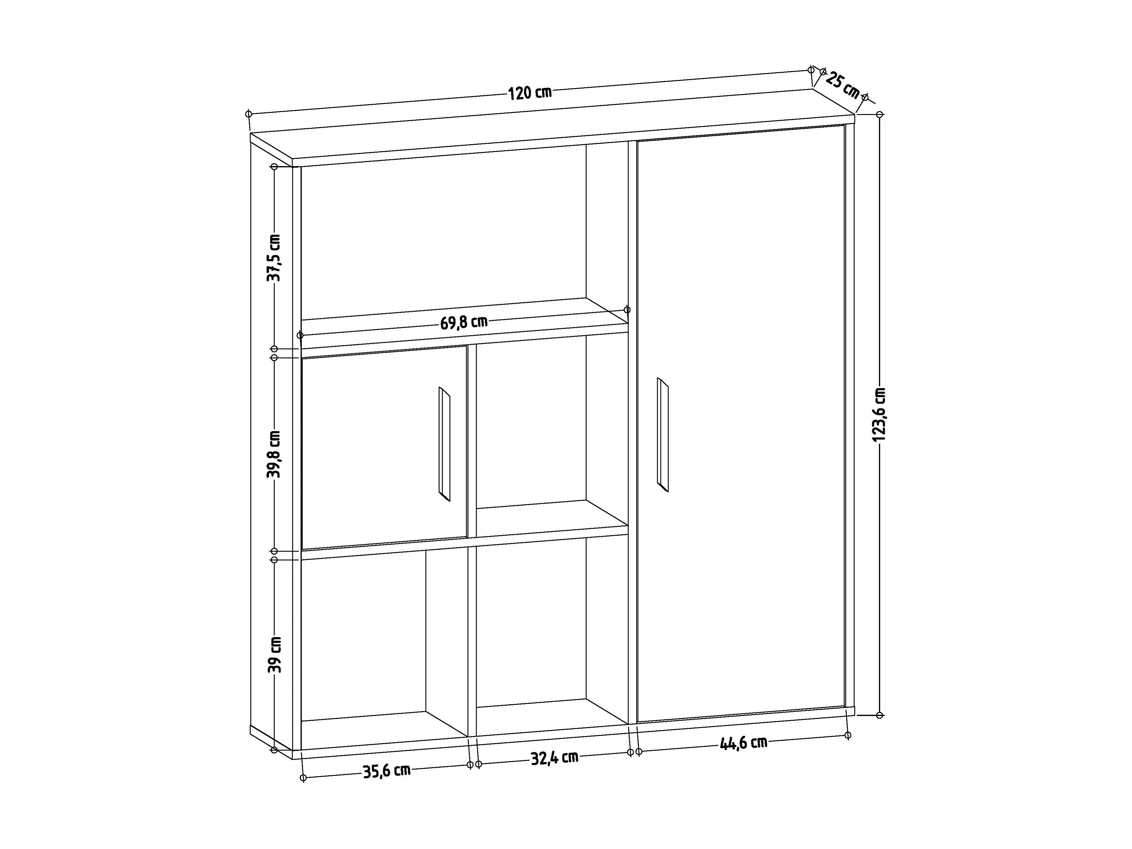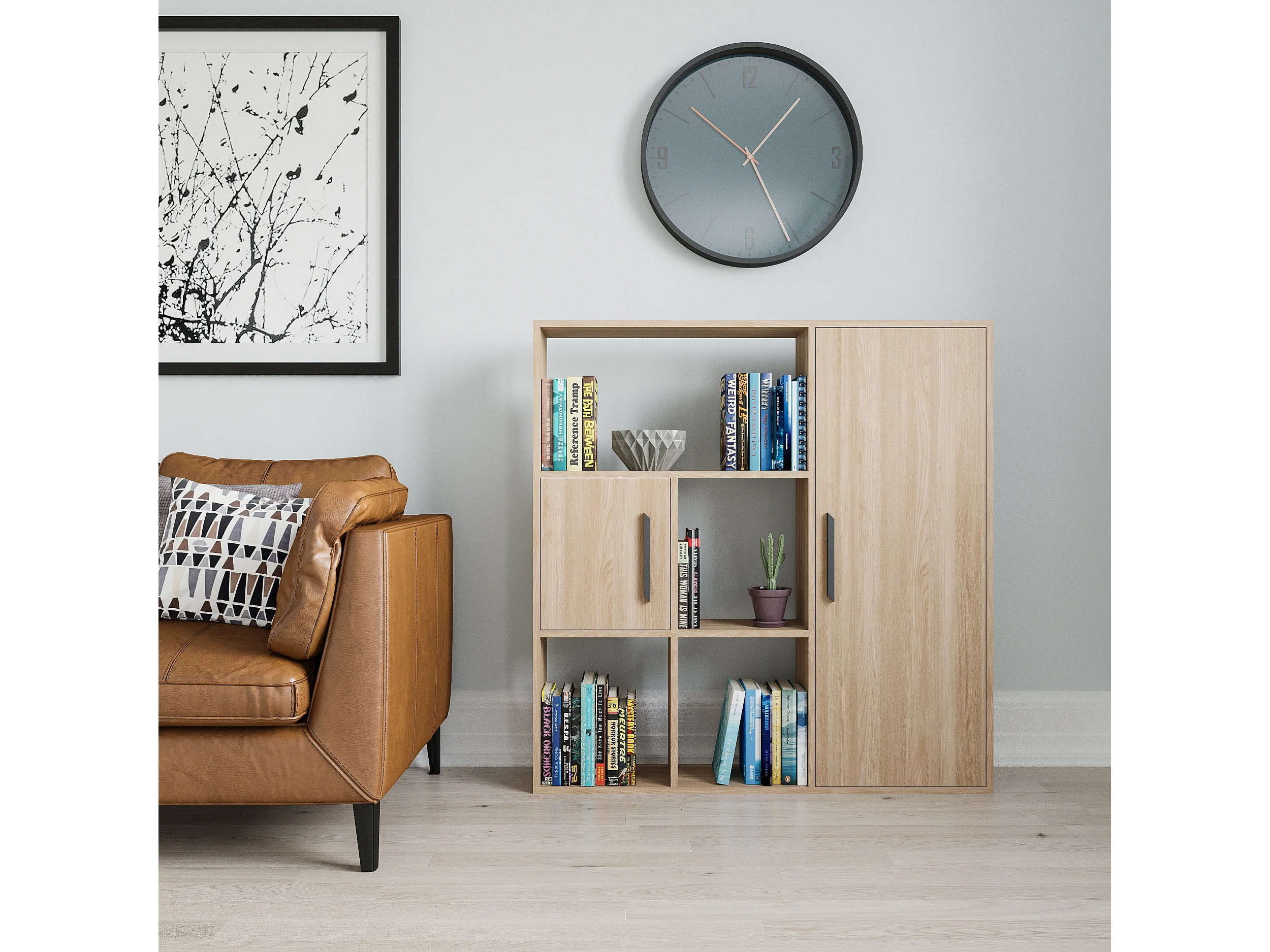 Randall Bibliothèque Rangement avec 2 Armoires et 7 Niches | Dos nu (Chêne et Blanc)