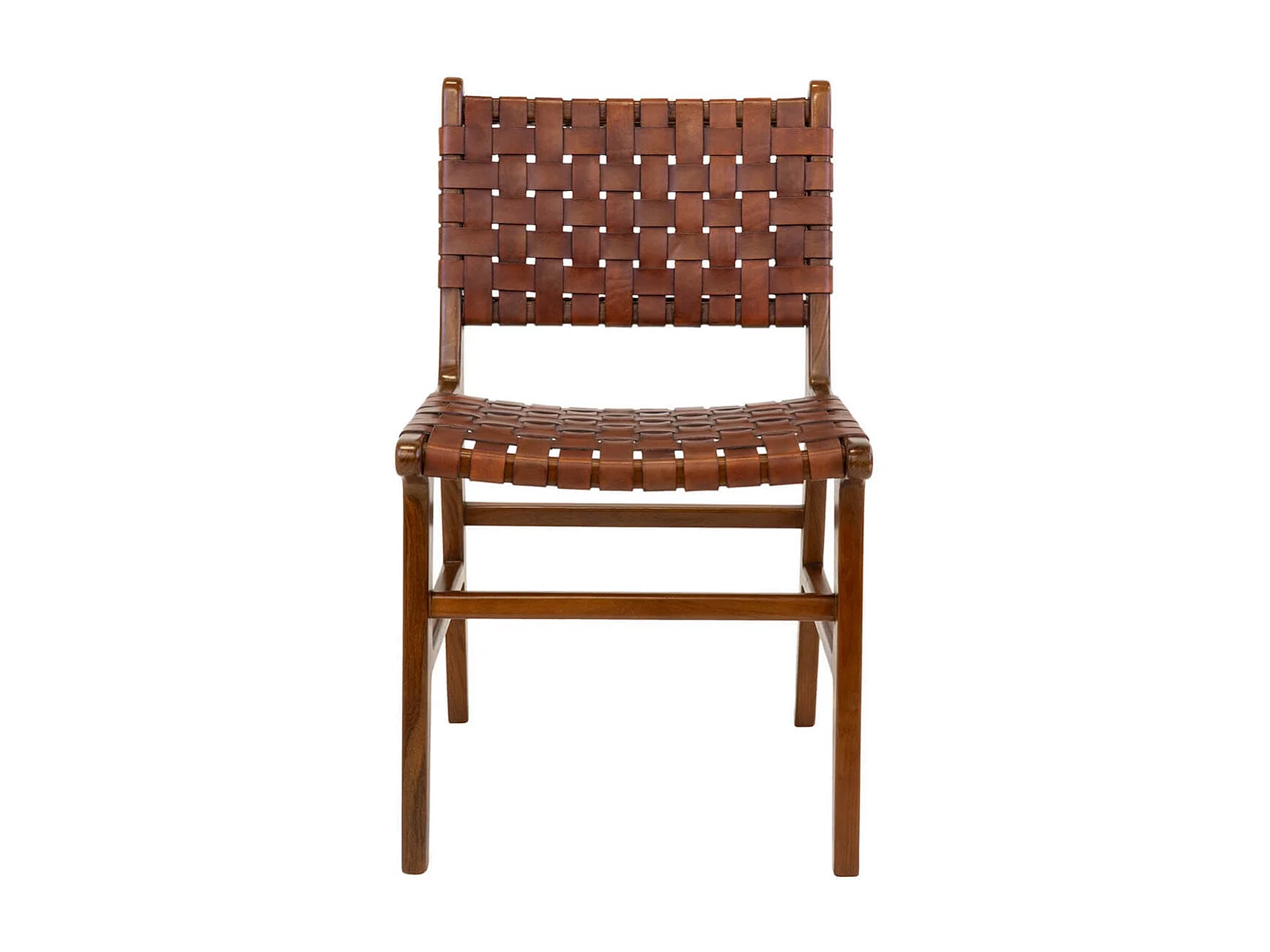 RIMINI - Lot de 2 Chaises en Teck et Lanières Cuir Marron
