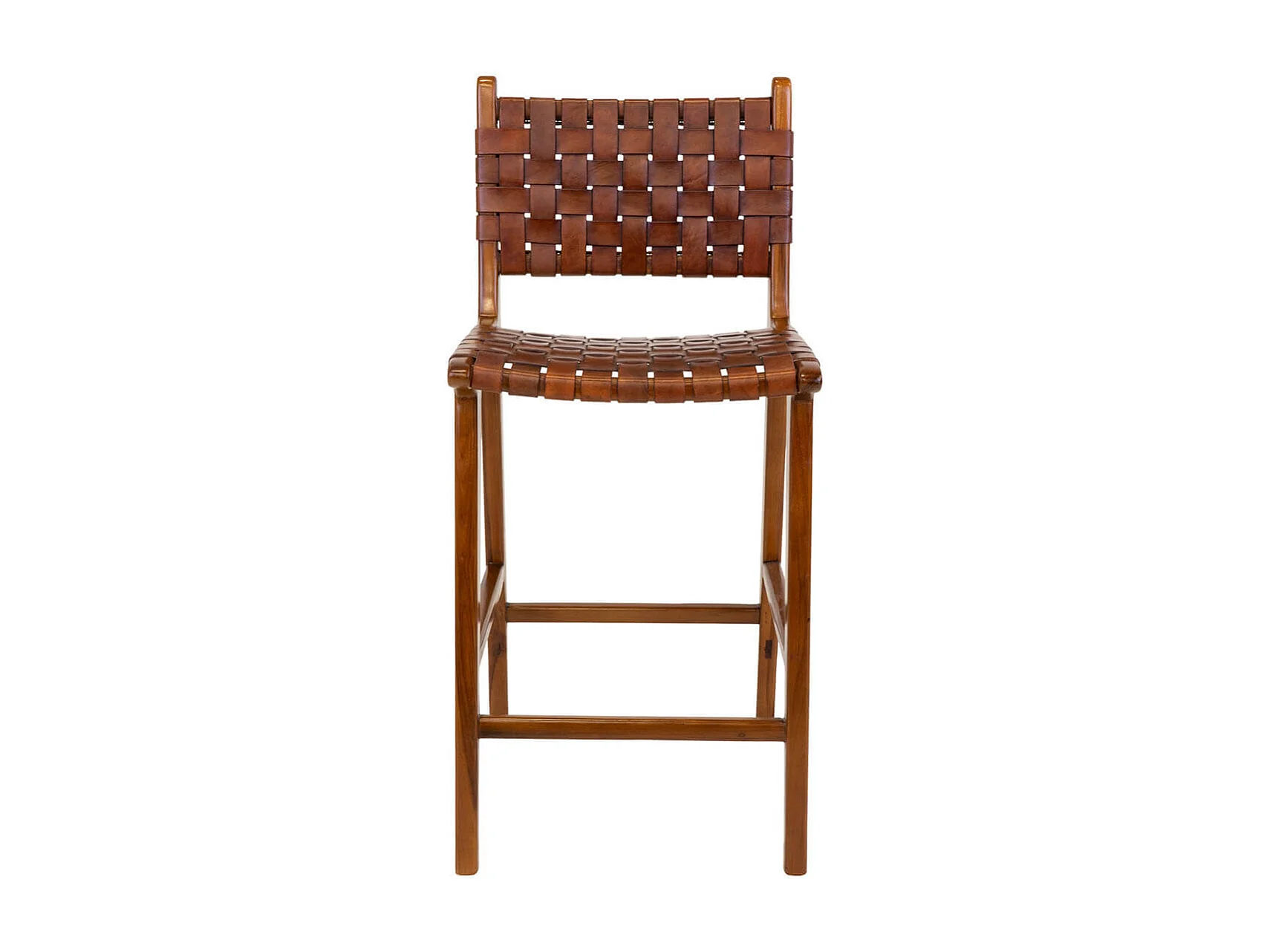 RIMINI - Lot de 2 Chaises Hautes en Teck et Lanières Cuir Marron