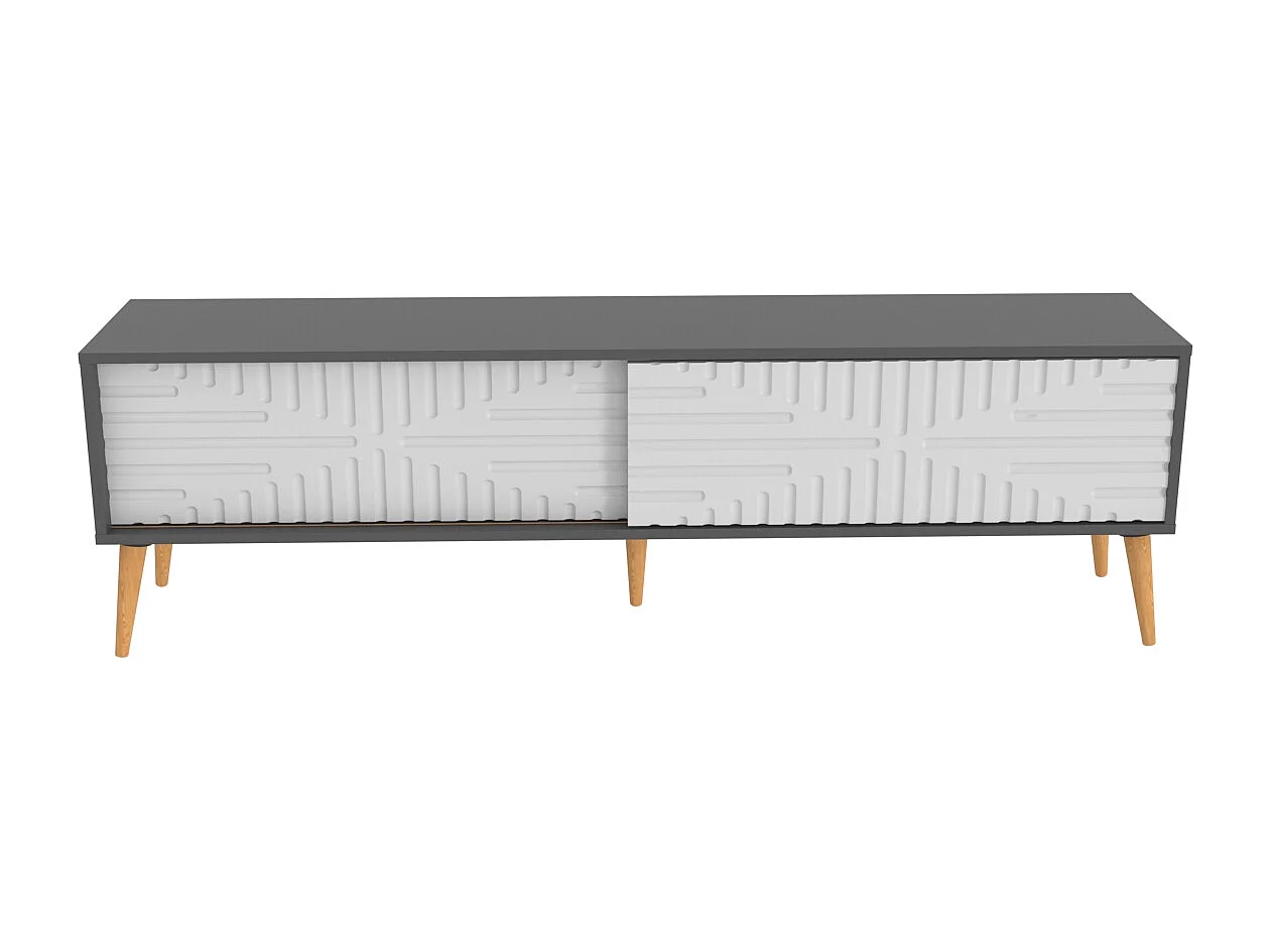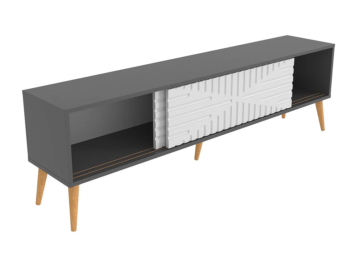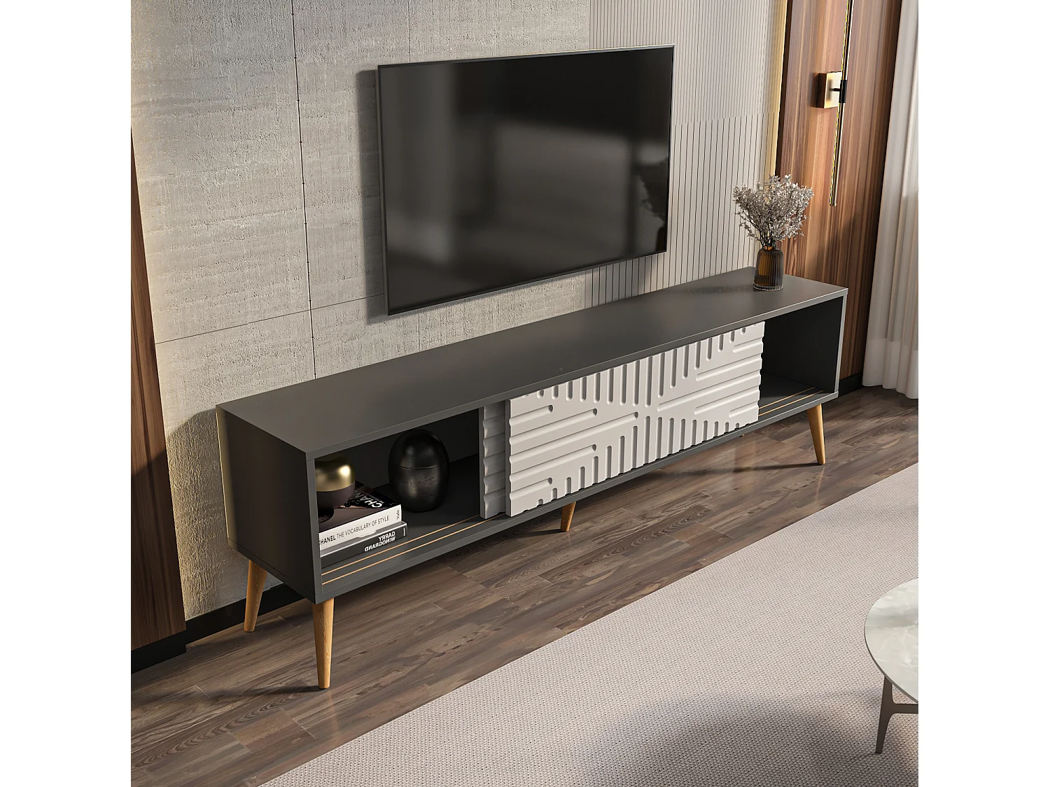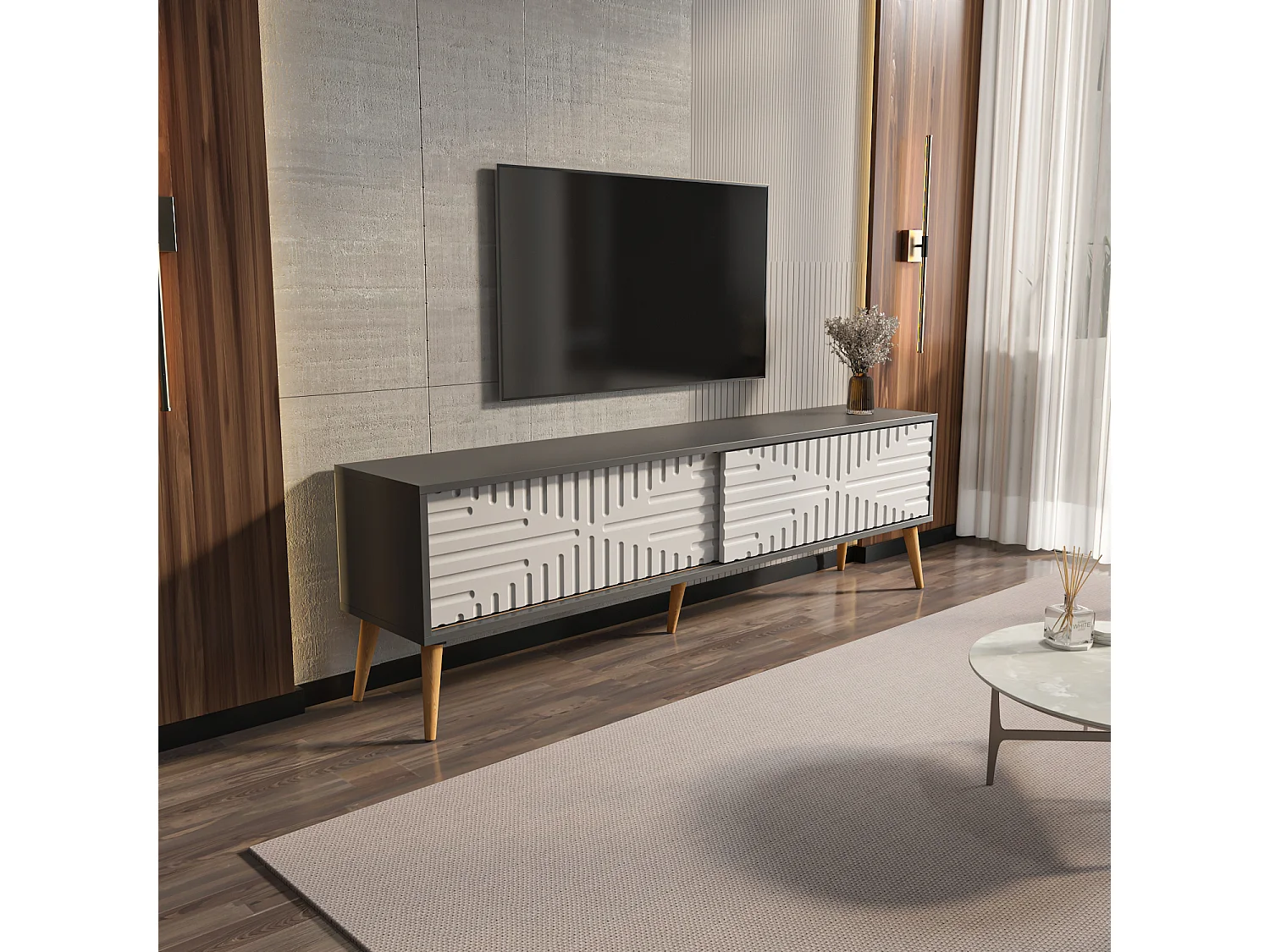 Riso Meuble TV 180 cm Portes en MDF Coulissantes (Anthracite et Blanc)