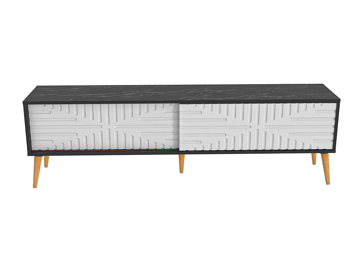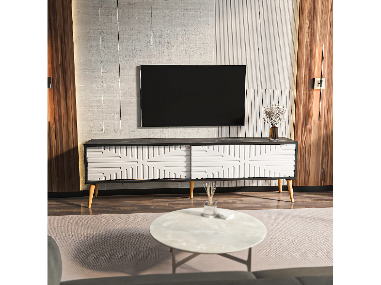 Riso Meuble TV 180 cm Portes en MDF Coulissantes (Bendire et Blanc)